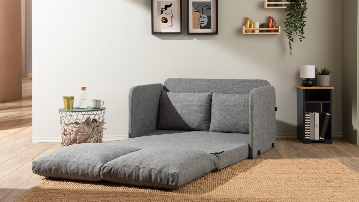 • Un canapé qui se transforme en un couchage d’appoint en quelques secondes, grâce à son assise pliable ultra-pratique et son design compact idéal pour les petits espaces.