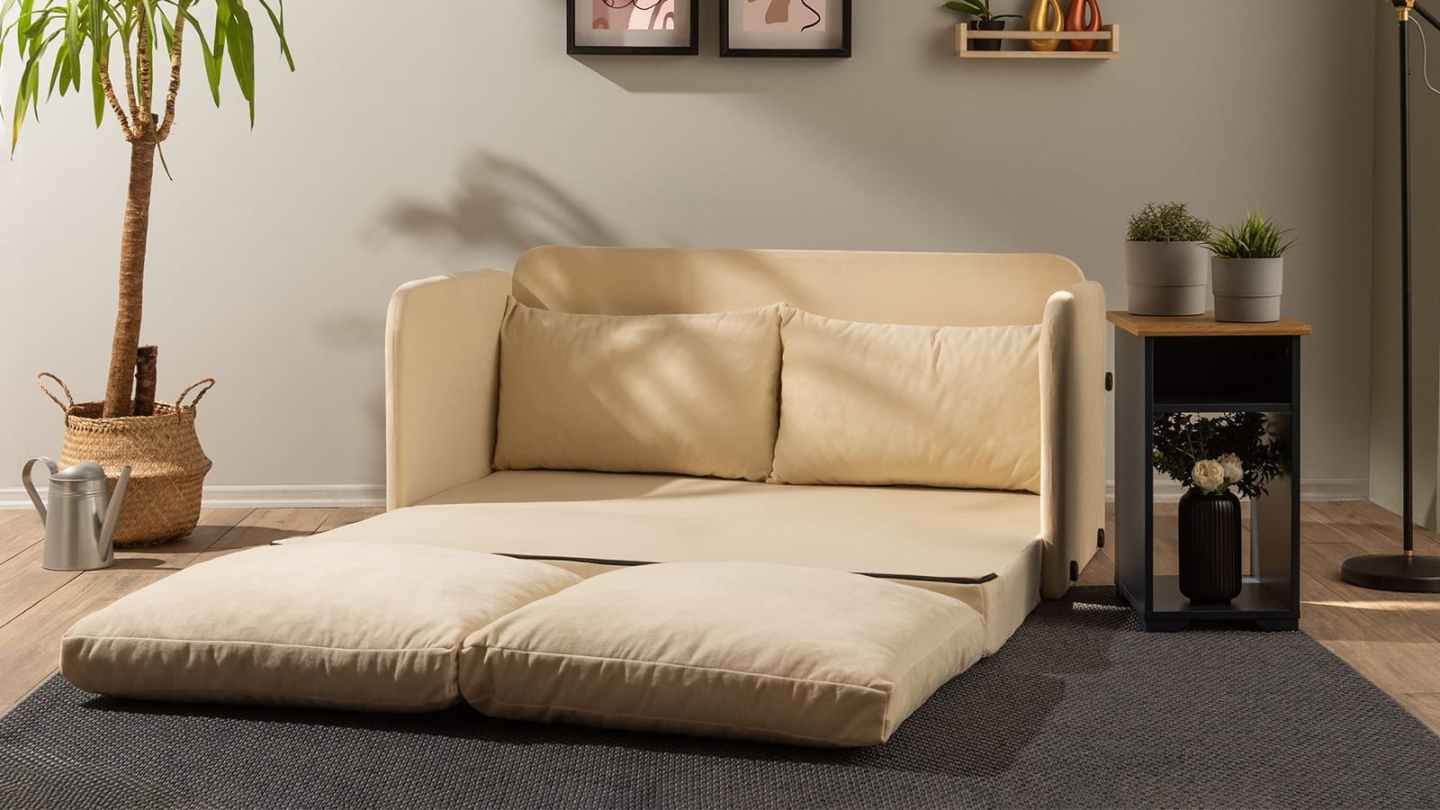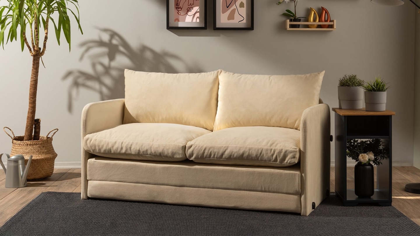 • Un canapé qui se transforme en un couchage d’appoint en quelques secondes, grâce à son assise pliable ultra-pratique et son design compact idéal pour les petits espaces.