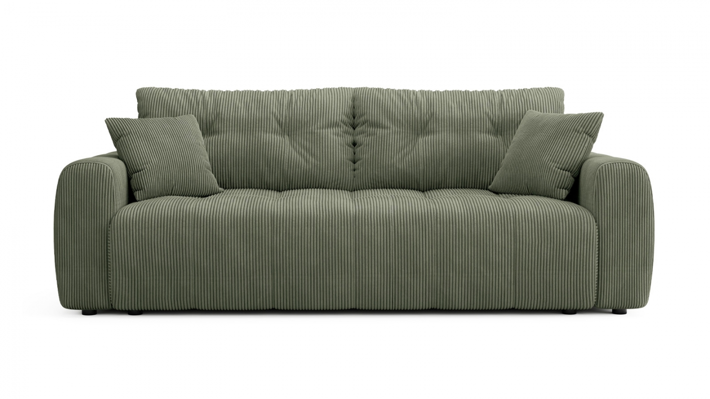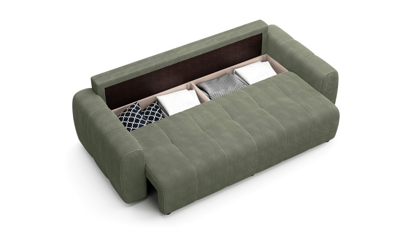 Canapé convertible 3 places - Komo• Couleur : Beige• Revêtement : Velours côtelé 380 g/m² certifié Oeko-Tex®, testé pour limiter la présence de substances nocives et offrir un contact plus sûr au quotidien• Structure : Bois• Garnissage : Mousse de polyuréthane expansé 25 Kg/m3, avec accueil moelleux et soutien ferme pour une assise équilibrée.• Coffre de...