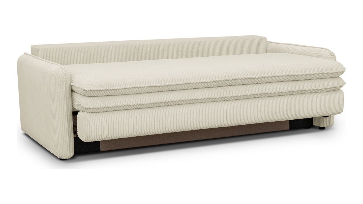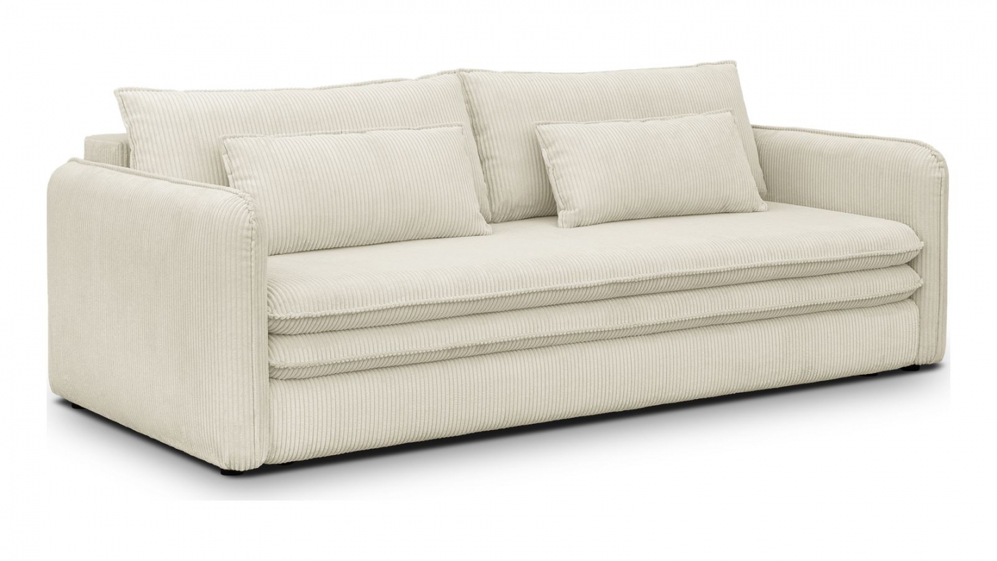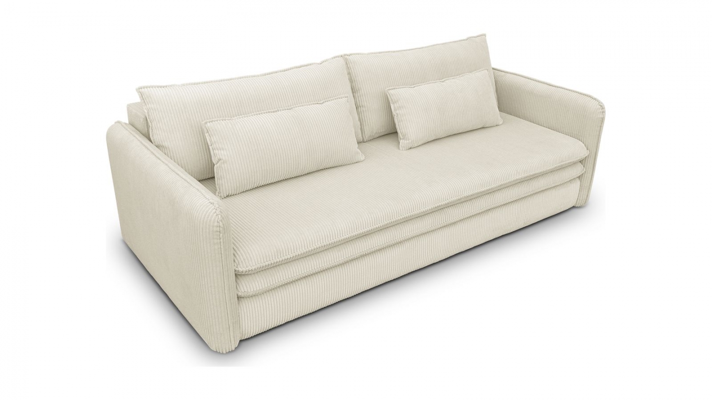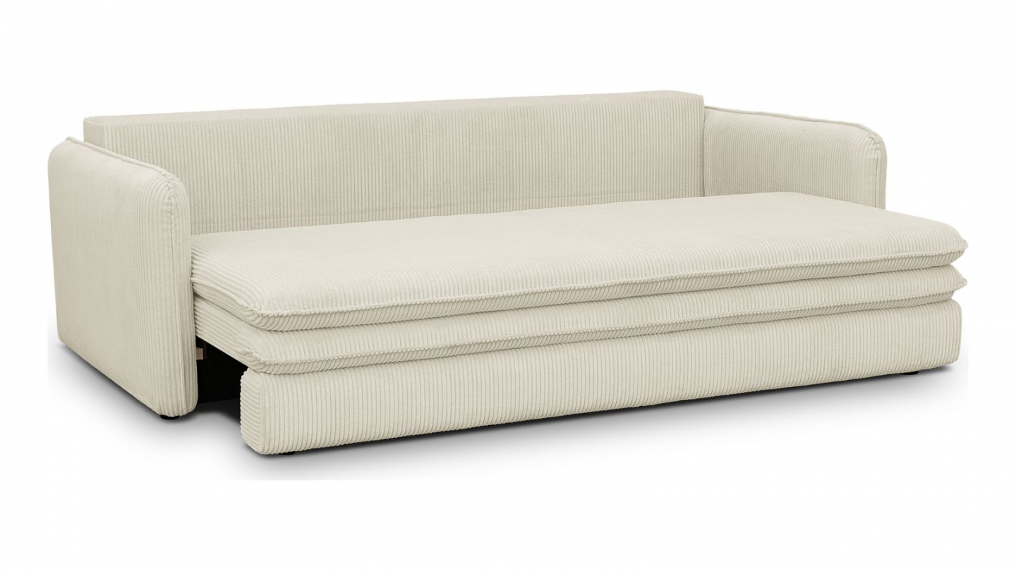 En stockCanapé convertible 3 places - Baya • Couleur : Vert kaki • Revêtement : Velours côtelé 380 g/m² certifié Oeko-Tex® - Pet Friendly, testé pour limiter la présence de substances nocives et offrir un contact plus sûr au quotidien • Structure : Pin massif certifié PEFC • Garnissage : Mousse de polyuréthane 30 kg/m3, avec accueil moelleux et soutien ferme pour...