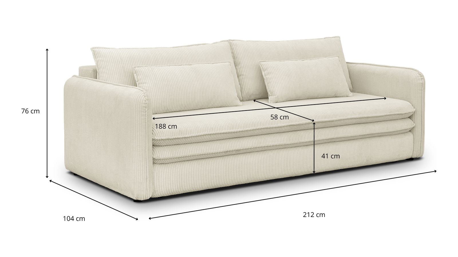• Largeur d'assise : 188 cm - Profondeur d'assise : 58 cm - Hauteur d'assise : 41 cm