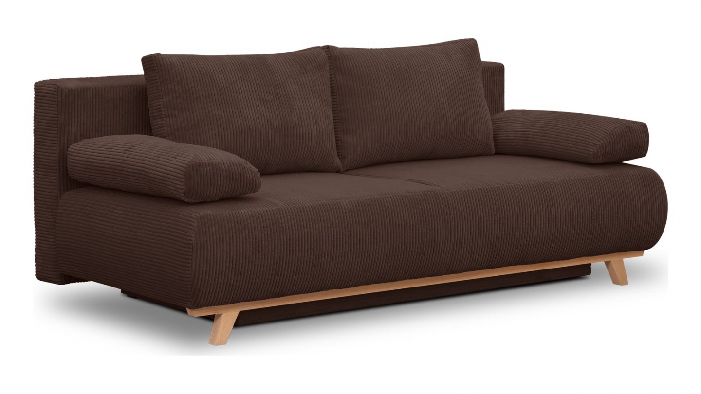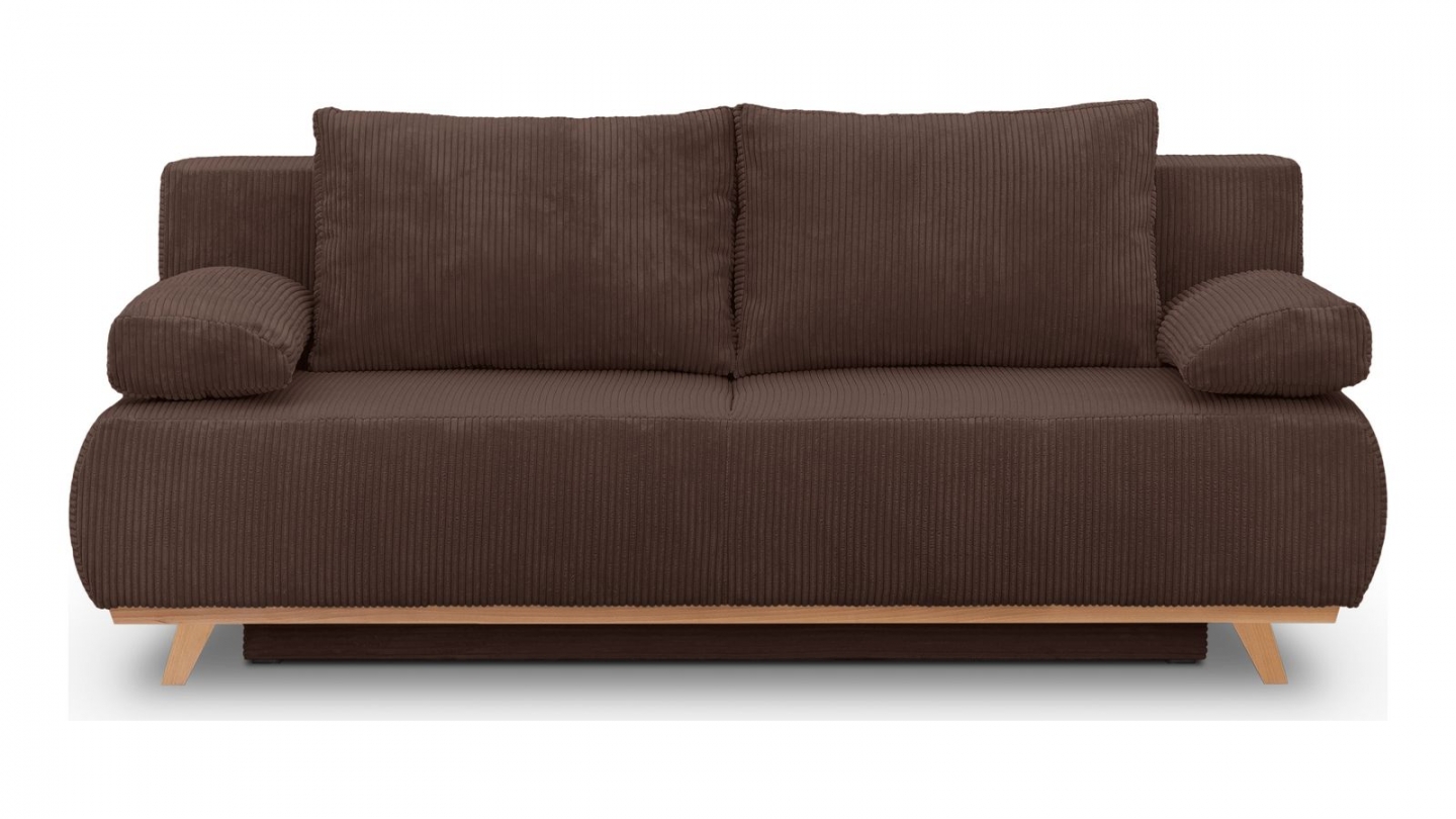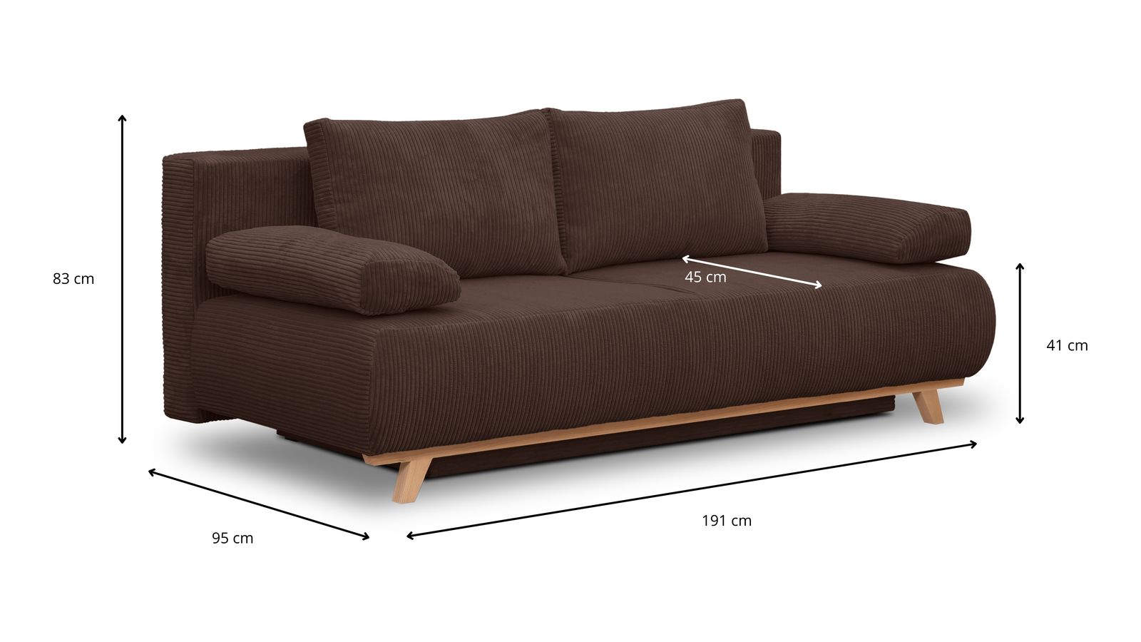 Canapé convertible 3 places en velours côtelé rouille Confort : équilibré : accueil moelleux, soutien ferme Couleur : rouille Revêtement : velours côtelé - certifié Oekotex Coffre de rangement sous l'assise, pratique pour ranger plaid, couettes etc Structure en bois Une assise renforcée avec ressorts métalliques plats pour un meilleur soutien, plus de...