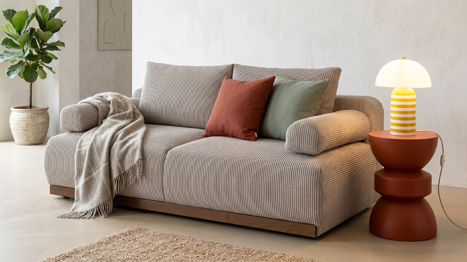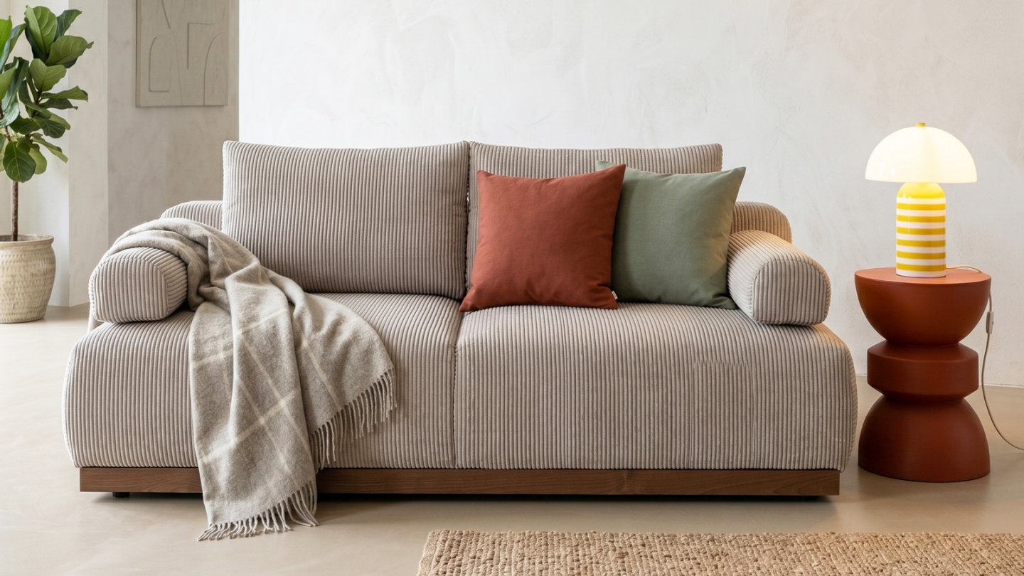 Canapé convertible Auteuil — velours côtelé beige