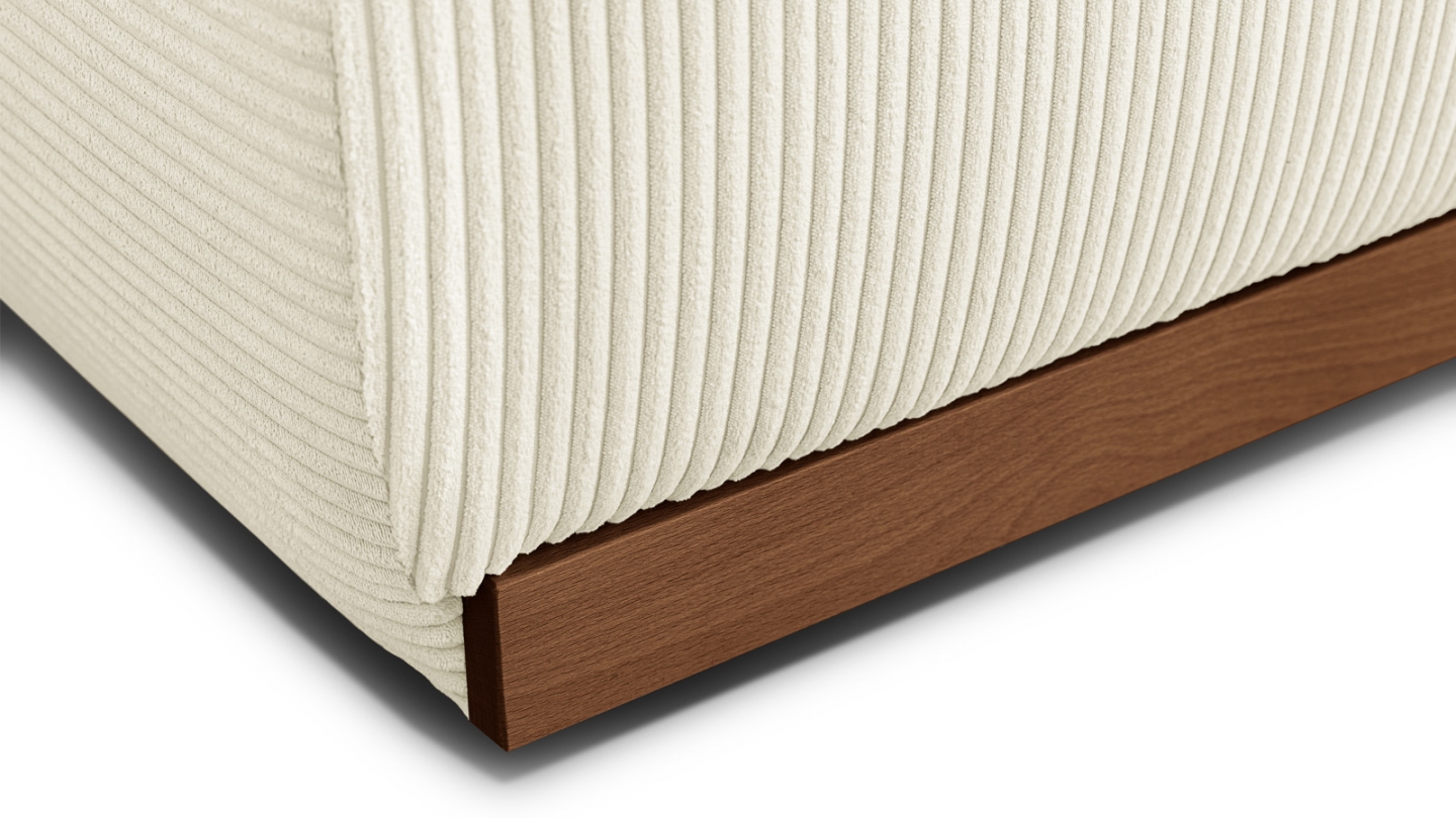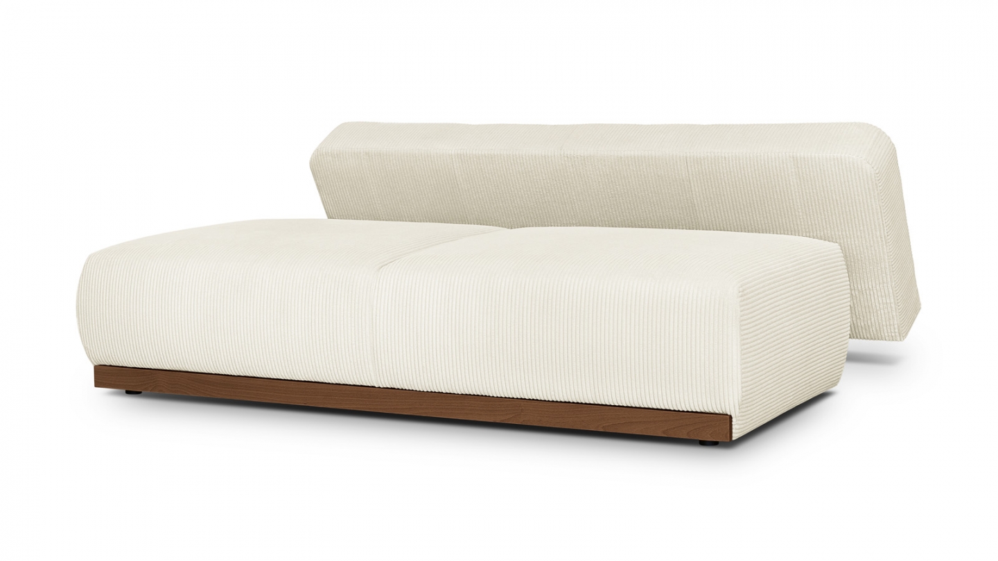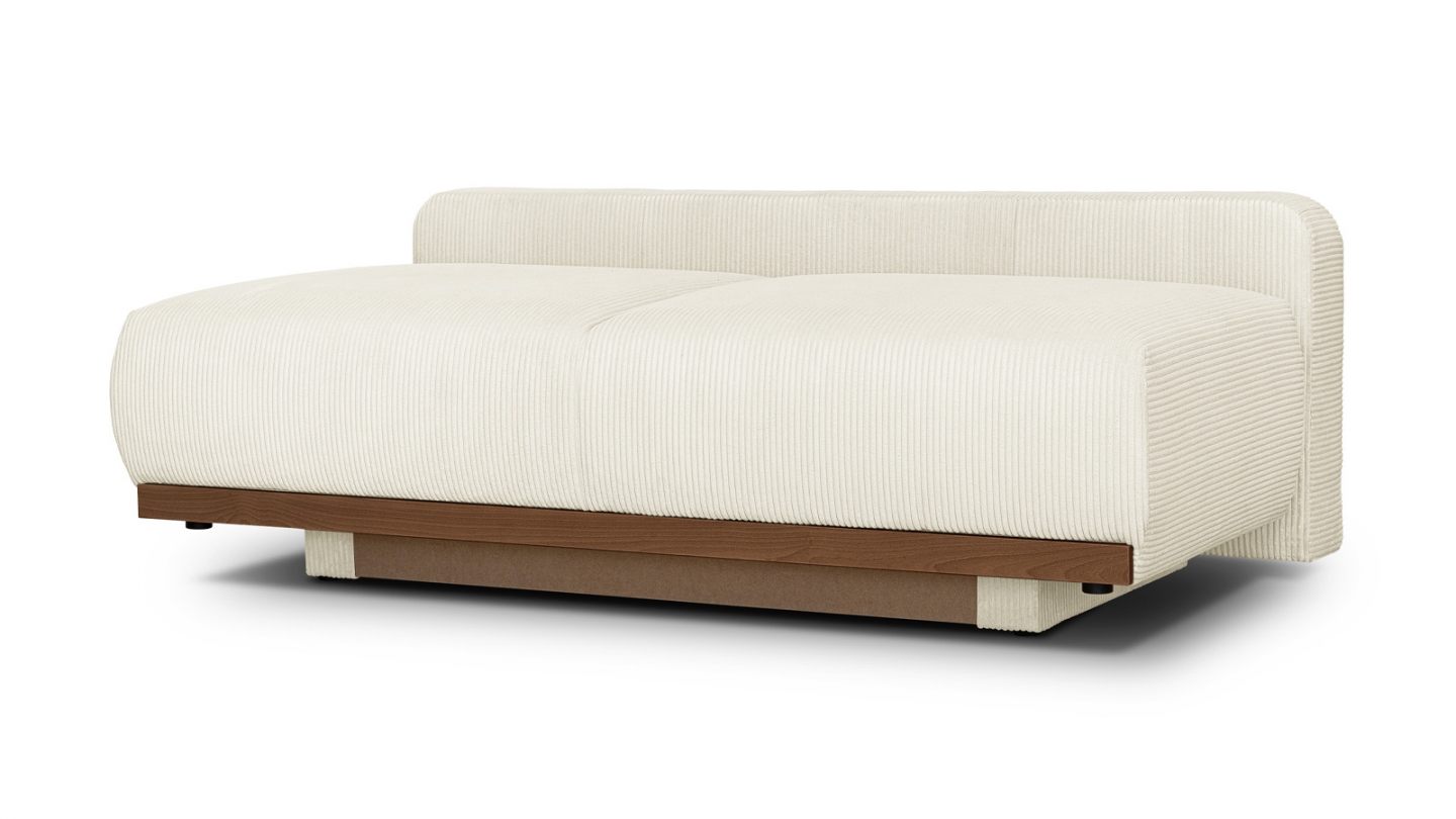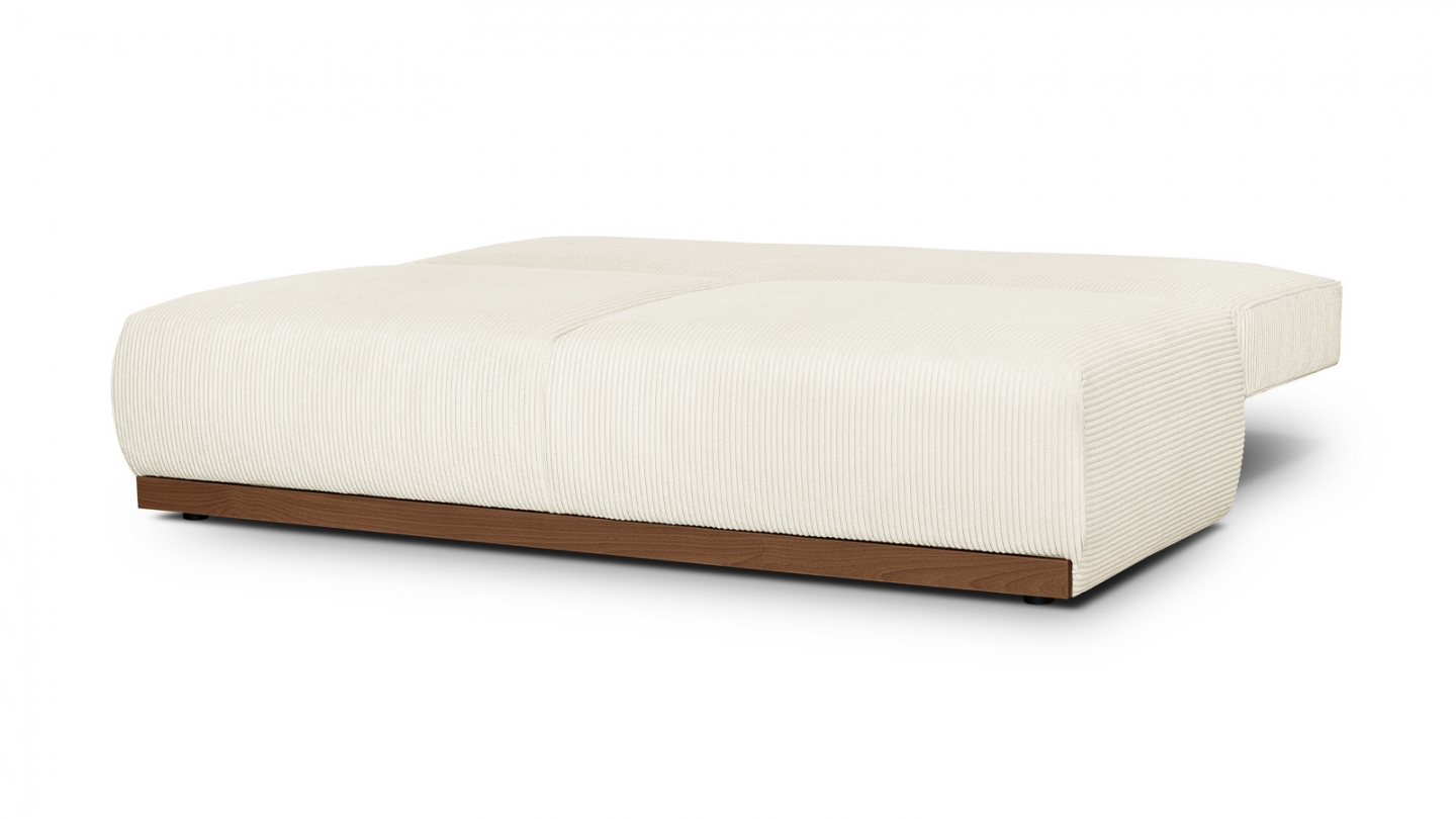 Le canapé convertible Auteuil séduit par sa silhouette épurée et ses matières nobles. Sans accoudoirs, il affiche un design contemporain et généreux, souligné par un piètement en bois massif coloris Noyer.