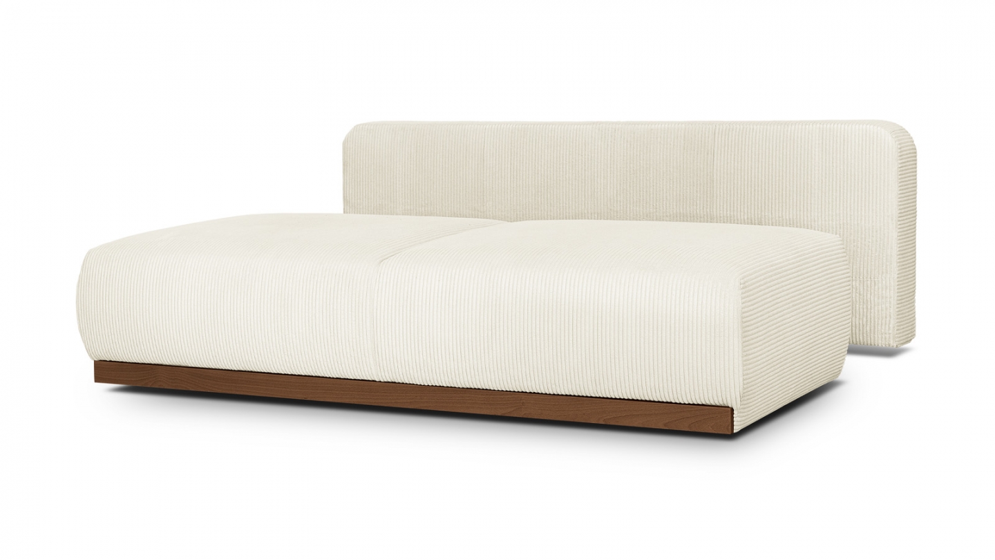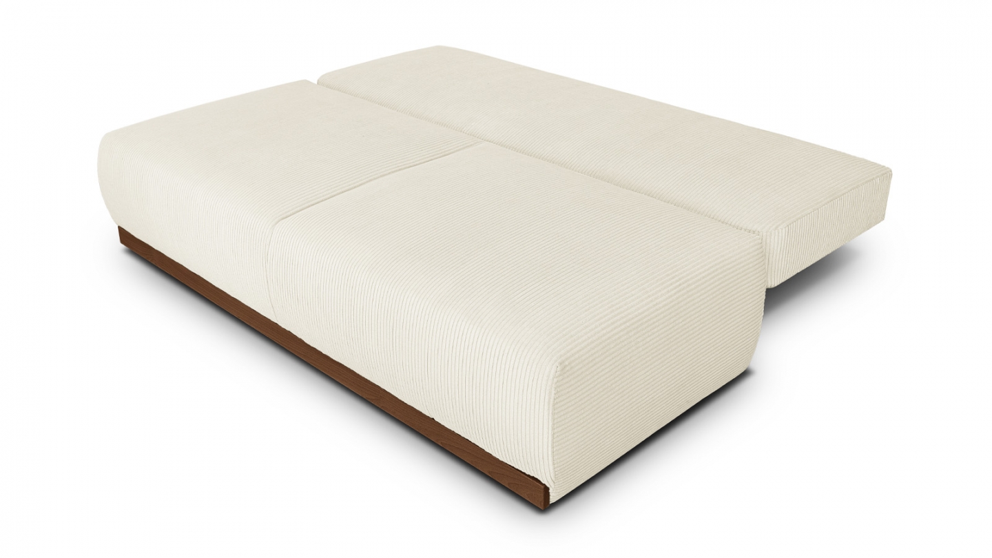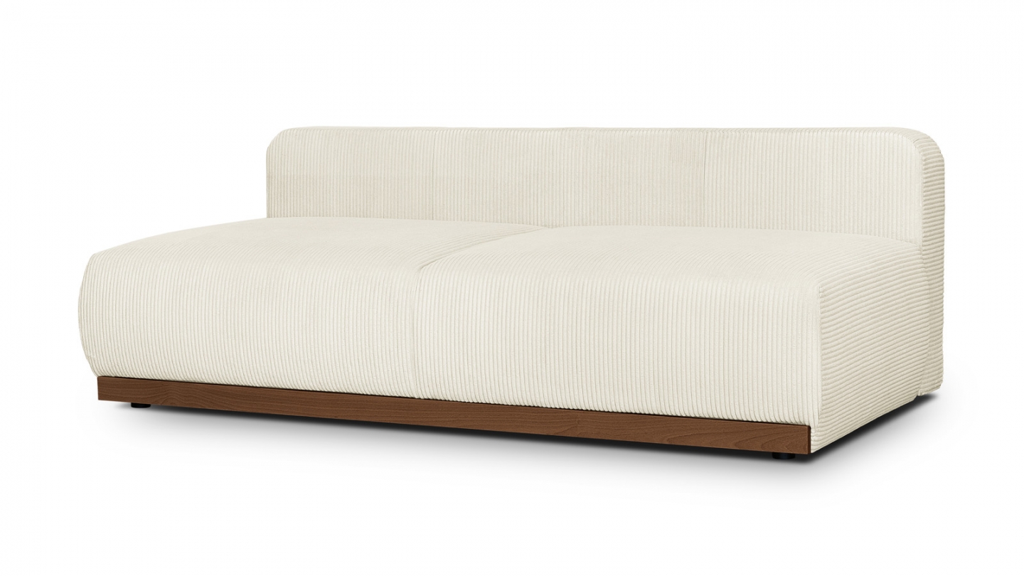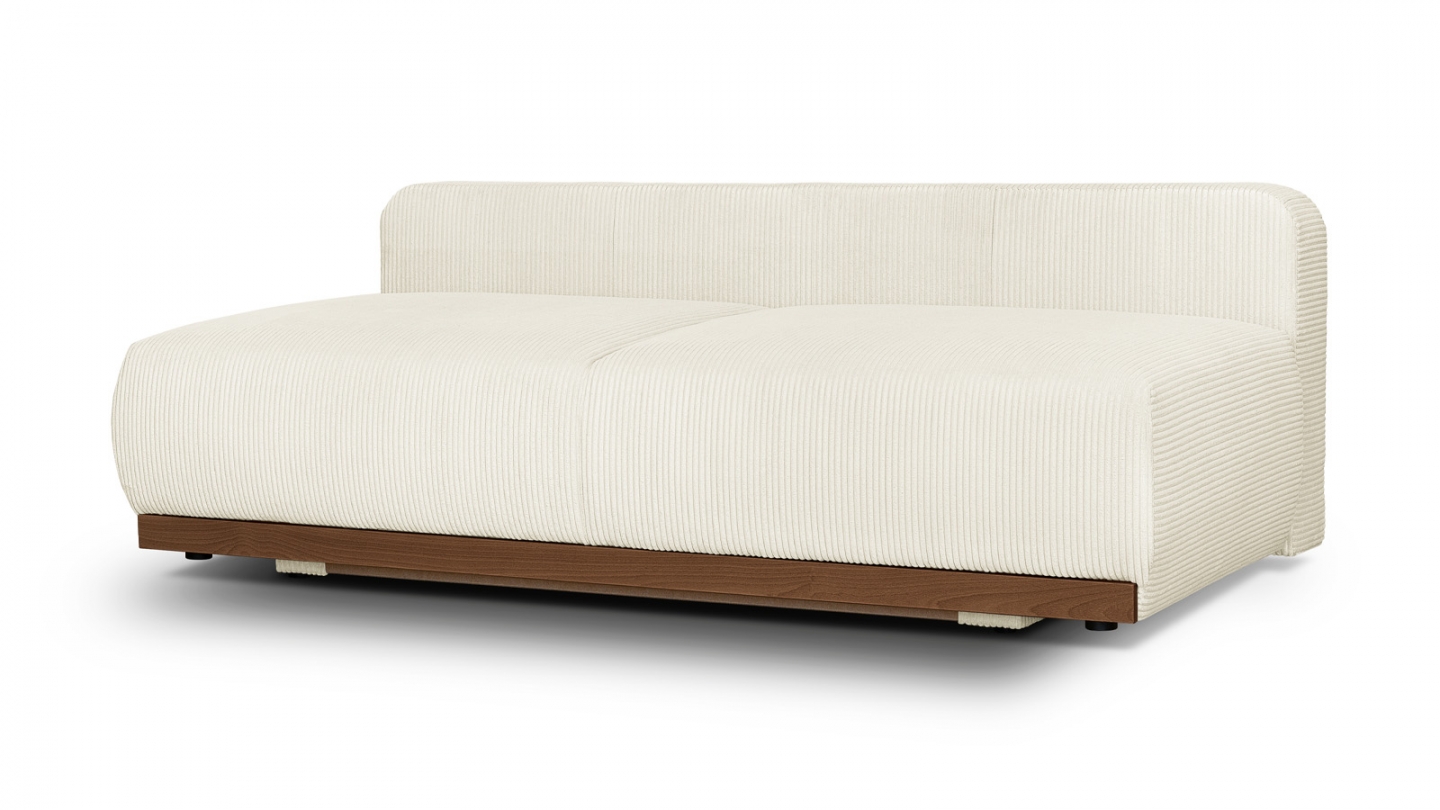 Le canapé convertible Auteuil séduit par sa silhouette épurée et ses matières nobles. Sans accoudoirs, il affiche un design contemporain et généreux, souligné par un piètement en bois massif coloris Noyer.