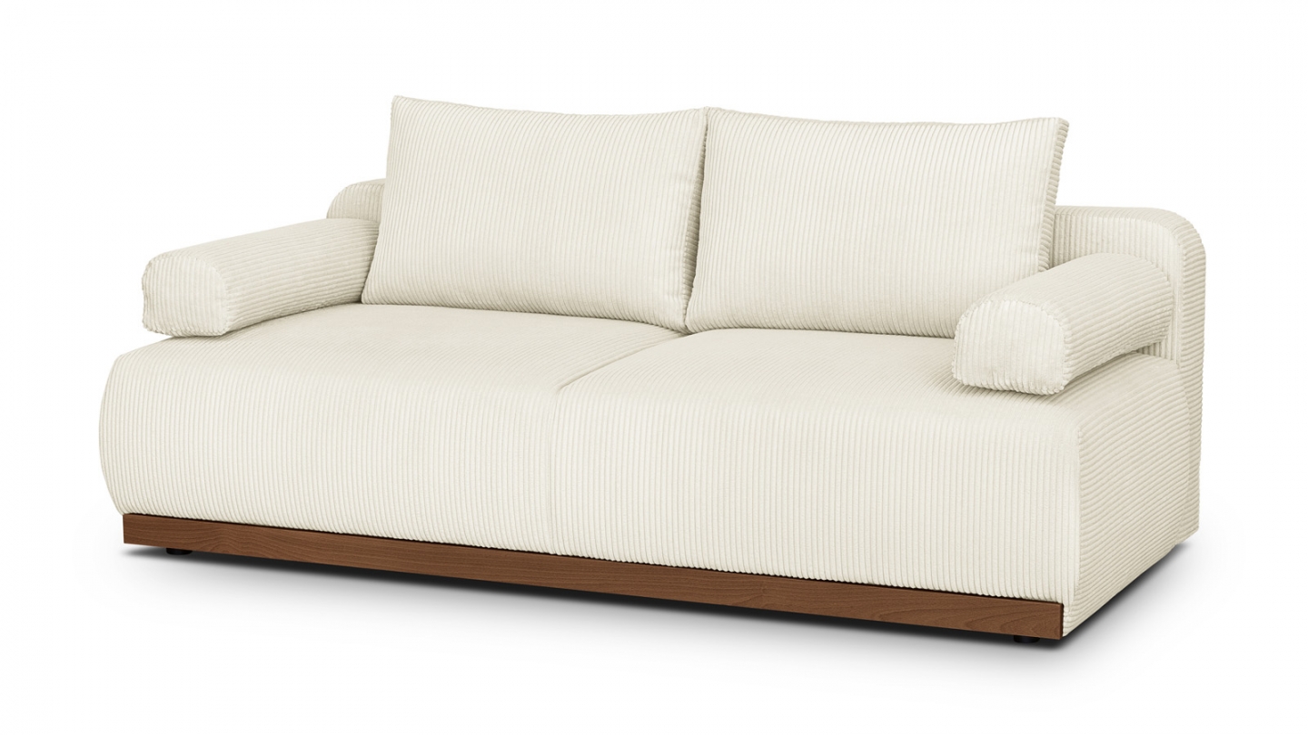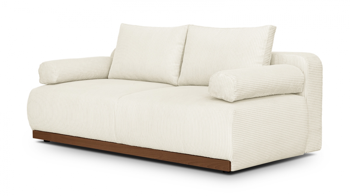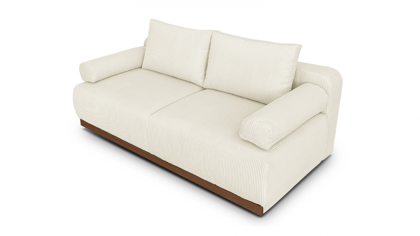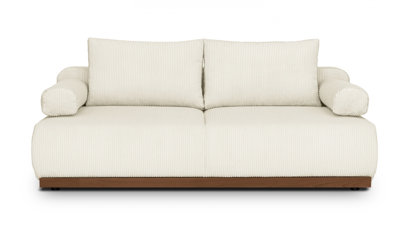 Le canapé convertible Auteuil séduit par sa silhouette épurée et ses matières nobles. Sans accoudoirs, il affiche un design contemporain et généreux, souligné par un piètement en bois massif coloris Noyer.