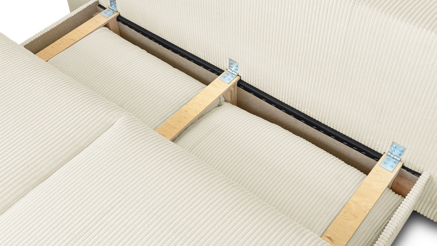 Canapé convertible 3 places avec coffre de rangement en velours côtelé beige est un canapé pensé pour le confort quotidien et l'élégance du salon. La teinte beige s'intègre avec naturel dans de nombreuses ambiances déco, du style scandinave au décor contemporain. Son coffre de rangement intégré permet de ranger plaids et linge de lit discrètement sous l'assise. Fabriqué en Europe, il répond aux exigences de qualité les plus strictes.