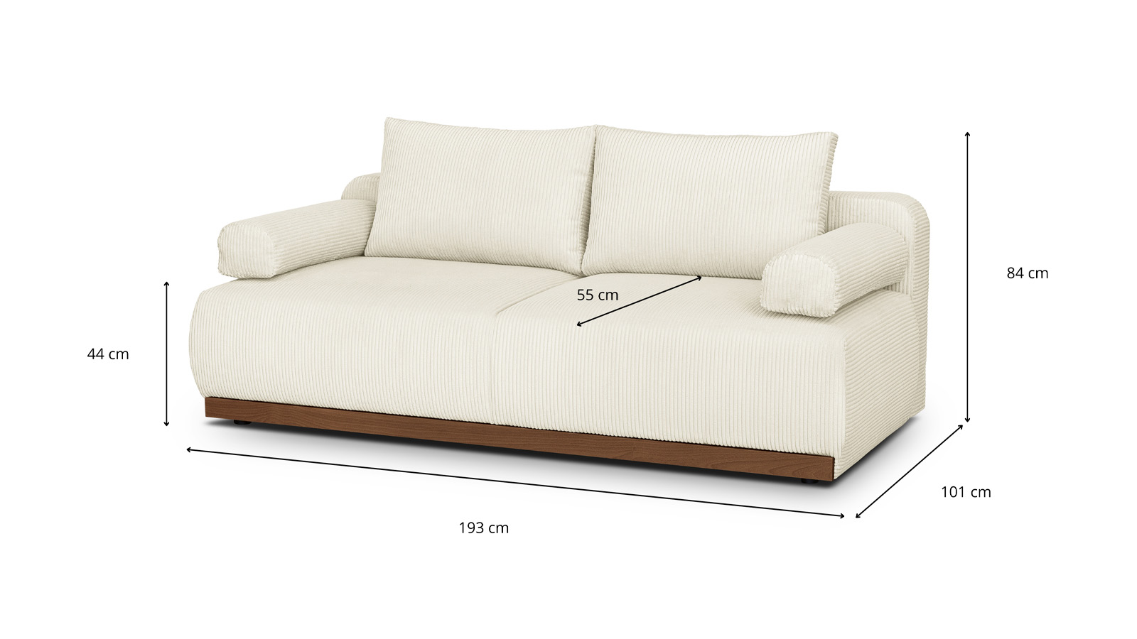 • Assise : L. 193 x P. 55 x H. 44 cm