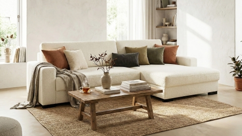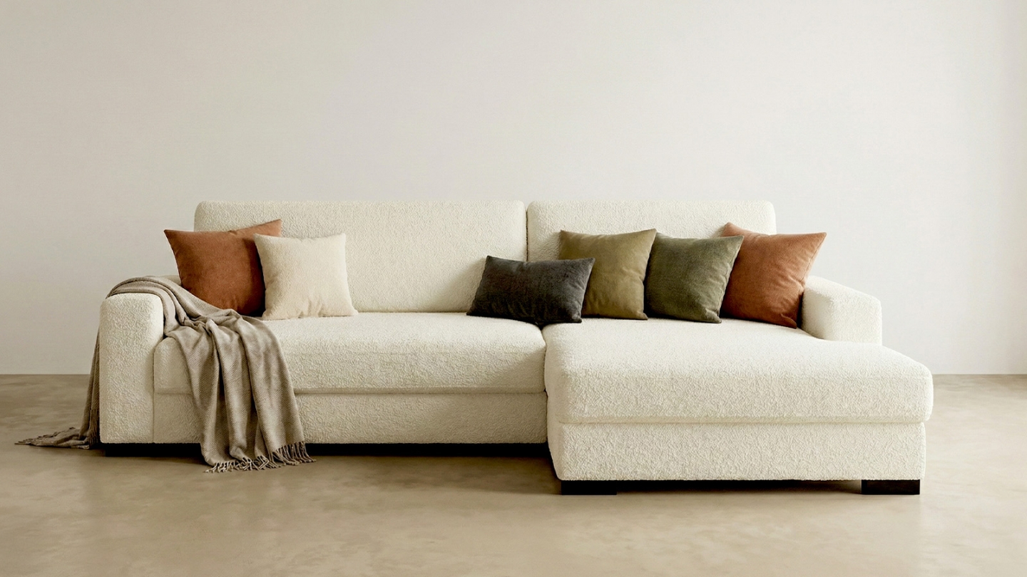 Adoptez ce modèle en tissu bouclé qui ajoutera à coup sûr une touche de confort et de style à votre salon !