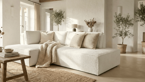 Le canapé d'angle convertible Barani est un choix à la fois esthétique et pratique pour les salons modernes. Sa couleur écru et son revêtement bouclé lui permettent de s'intégrer facilement dans différents styles de décoration intérieure. En plus d'être joli, ce canapé est également fonctionnel : il est équipé d'une fonction convertible qui permet de le transformer en lit confortable pour les invités.