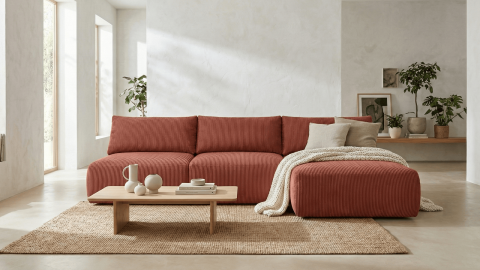 Canapé d'angle convertible 4 places en velours côtelé rouille