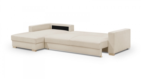Canapé convertible d'angle 5 places en tissu chenille beige