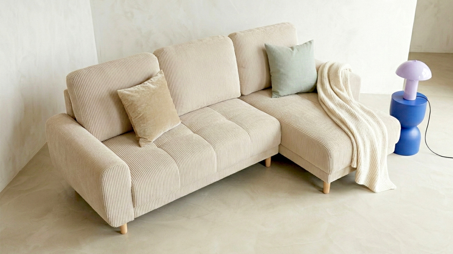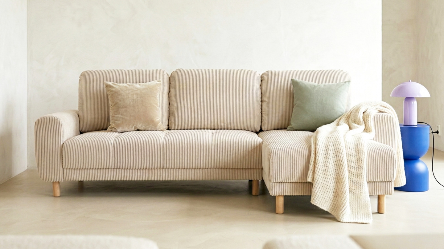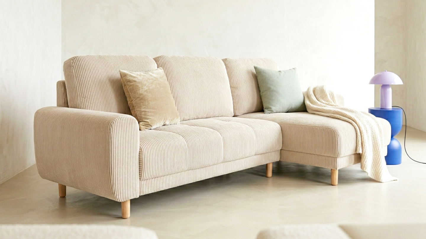 Avec ses courbes généreuses, son velours côtelé beige et son angle réversible, le canapé Alva s’impose comme un véritable caméléon du salon. Il allie style sobre, confort équilibré et fonctionnalités pratiques, pour répondre aux besoins d’un intérieur vivant, sans jamais renoncer à l’élégance.