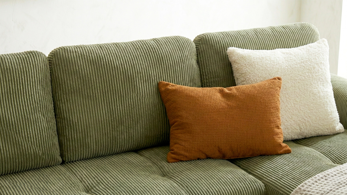 Son revêtement en velours côtelé, certifié Oeko-Tex, offre un toucher doux et une vraie profondeur visuelle. Résistant à l’abrasion et à la lumière, il est conçu pour durer, tout en apportant une belle touche déco au quotidien.