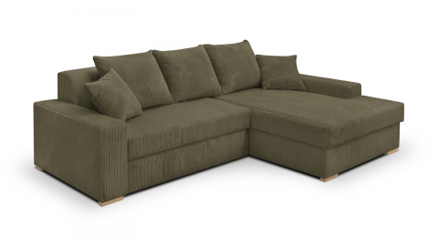 Canapé d'angle à droite convertible 3/4 places en velours côtelé vert kaki - Nyssa