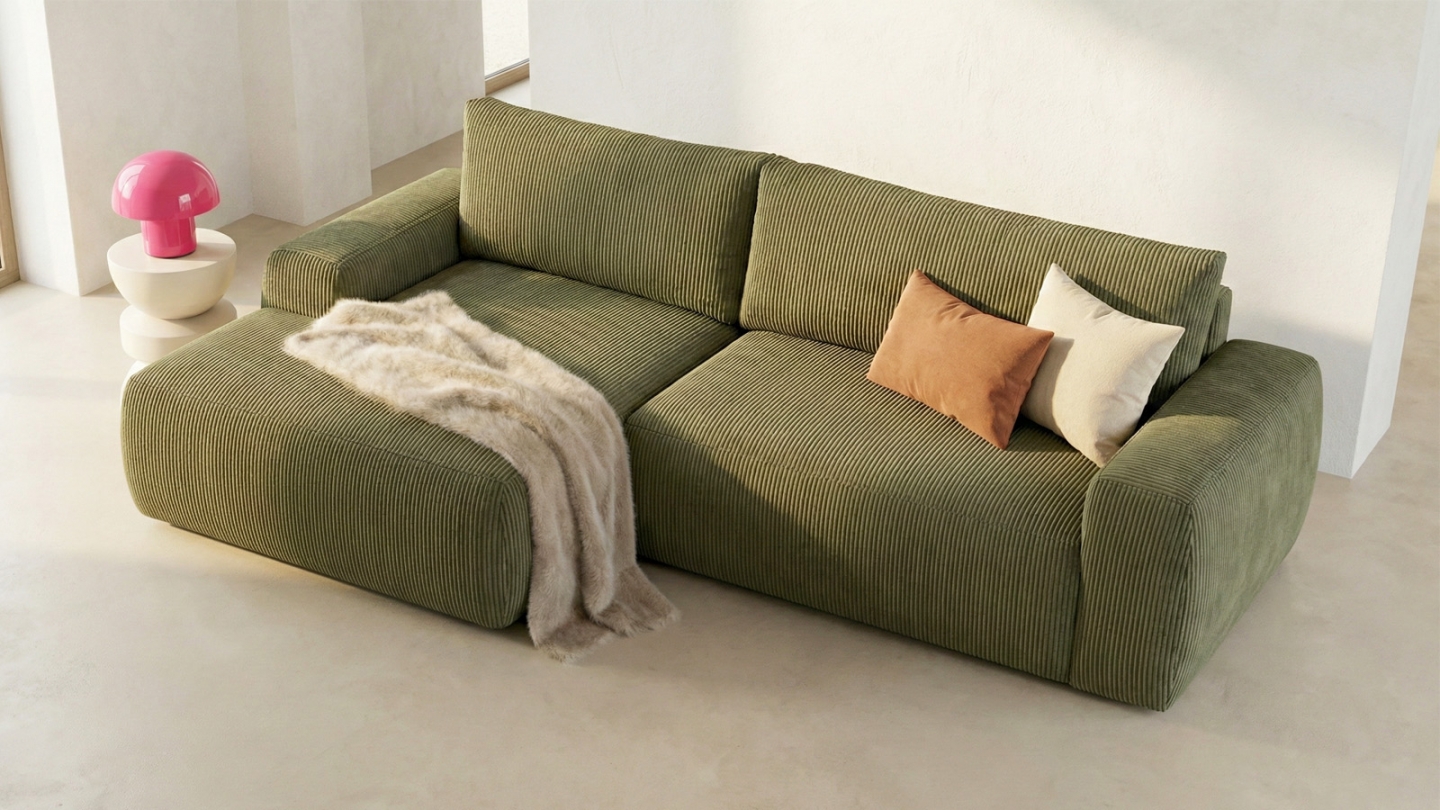 • Revêtement : Velours côtelé certifié Oekotex