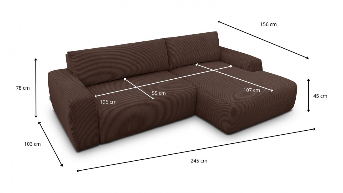• Type d'angle : à droite (lorsqu'on se tient face au canapé)