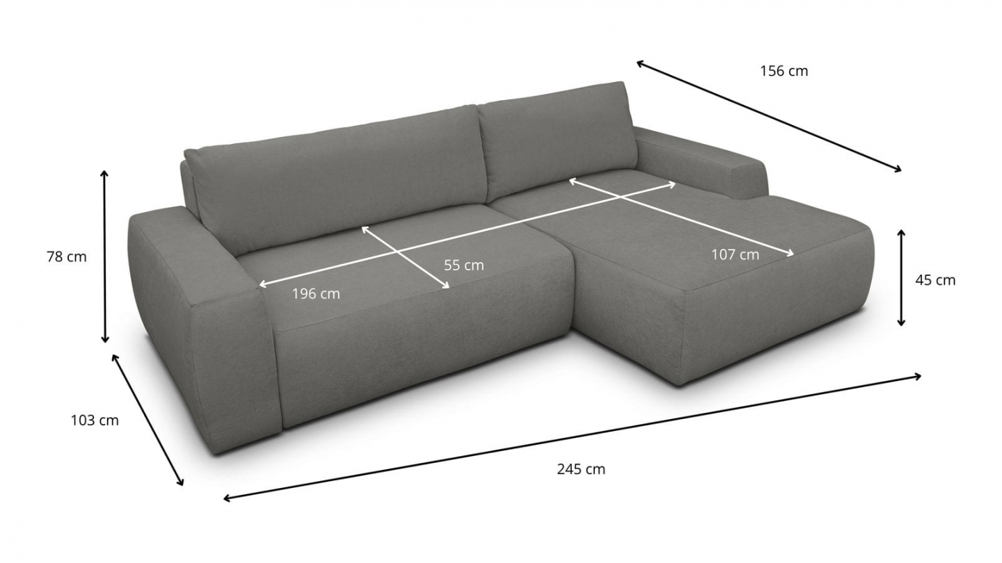 • Type d'angle : à droite (lorsqu'on se tient face au canapé)