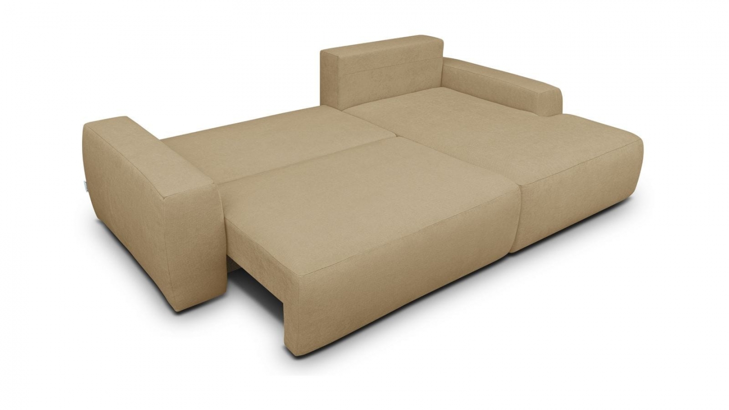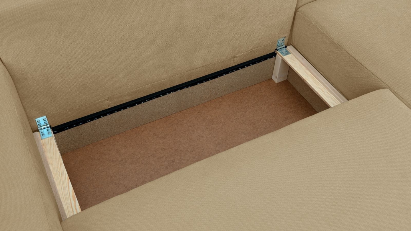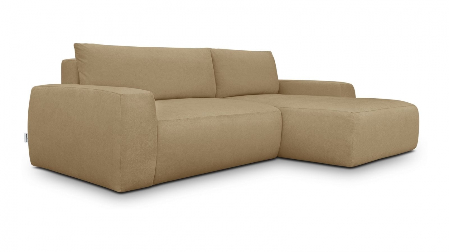 Canapé d'angle convertible 3 places - Sonny• Type d'angle : à gauche (lorsqu'on se tient face au canapé)• Couleur : Beige• Revêtement : Velours côtelé certifié Oekotex• Structure : Pin massif certifié• Garnissage : Mousse de polyuréthane 30k g/m3• Confort : équilibré (accueil moelleux, soutien ferme)• Coussins de dossier déhoussables• 1 coffre de...