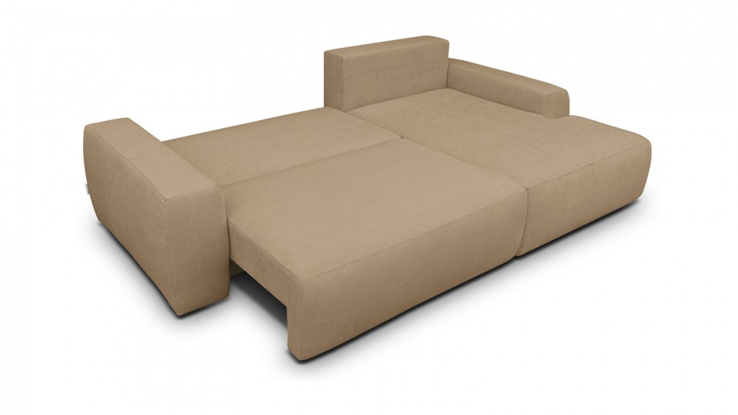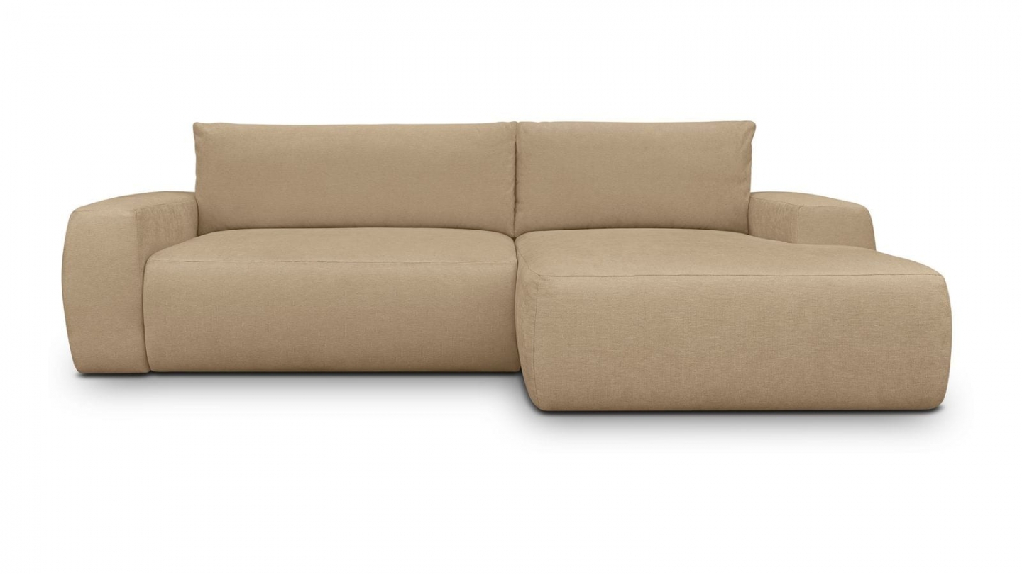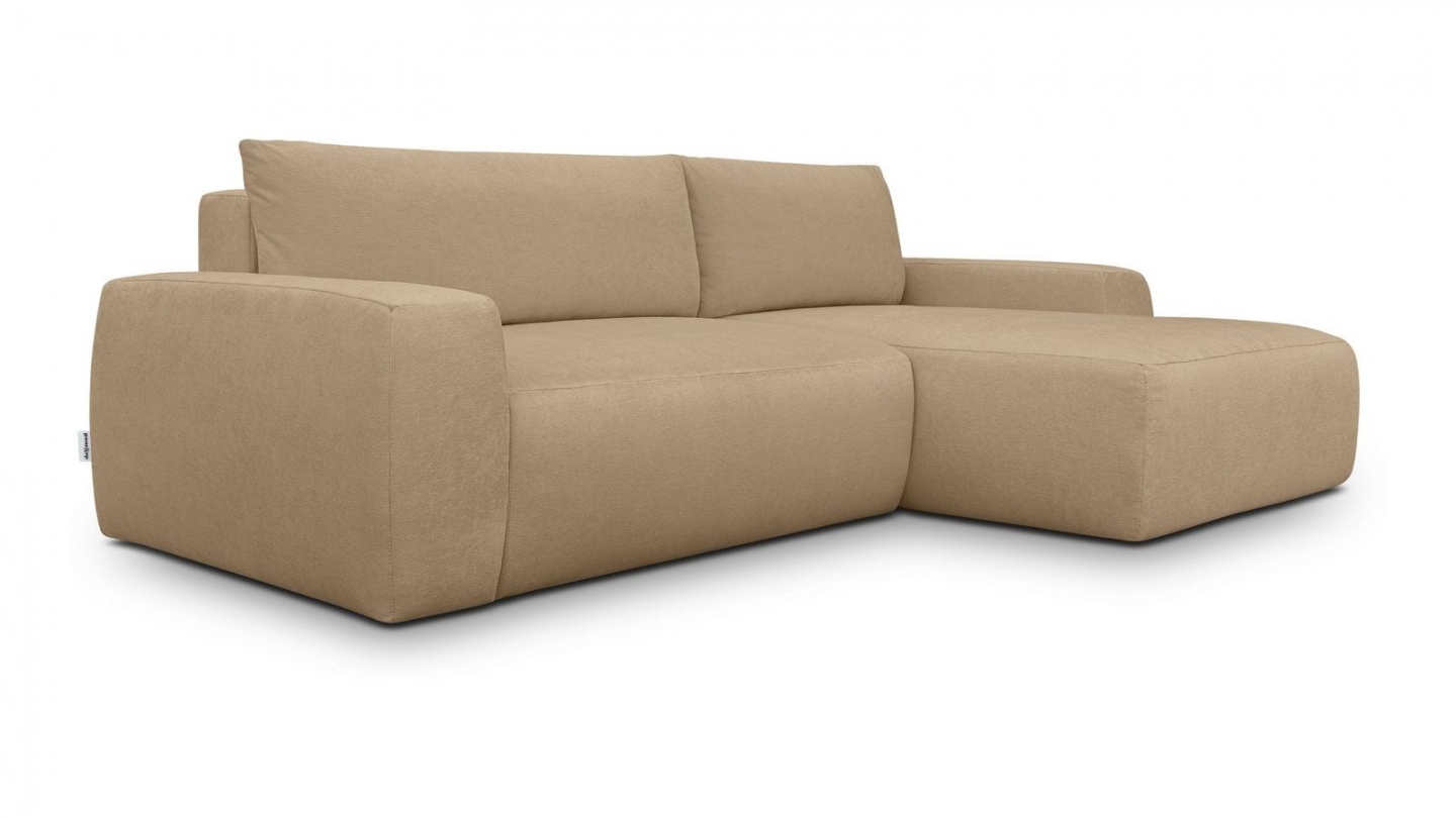 Canapé d'angle convertible 3 places - Sonny• Type d'angle : à droite (lorsqu'on se tient face au canapé)• Couleur : Beige• Revêtement : Velours côtelé certifié Oekotex• Structure : Pin massif certifié• Garnissage : Mousse de polyuréthane 30k g/m3• Confort : équilibré (accueil moelleux, soutien ferme)• Coussins de dossier déhoussables• 1 coffre de...