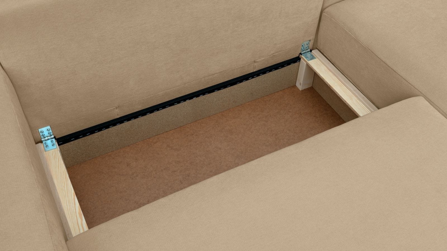 Canapé d'angle convertible 3 places - Sonny• Type d'angle : à gauche (lorsqu'on se tient face au canapé)• Couleur : Beige• Revêtement : Velours côtelé certifié Oekotex• Structure : Pin massif certifié• Garnissage : Mousse de polyuréthane 30k g/m3• Confort : équilibré (accueil moelleux, soutien ferme)• Coussins de dossier déhoussables• 1 coffre de...
