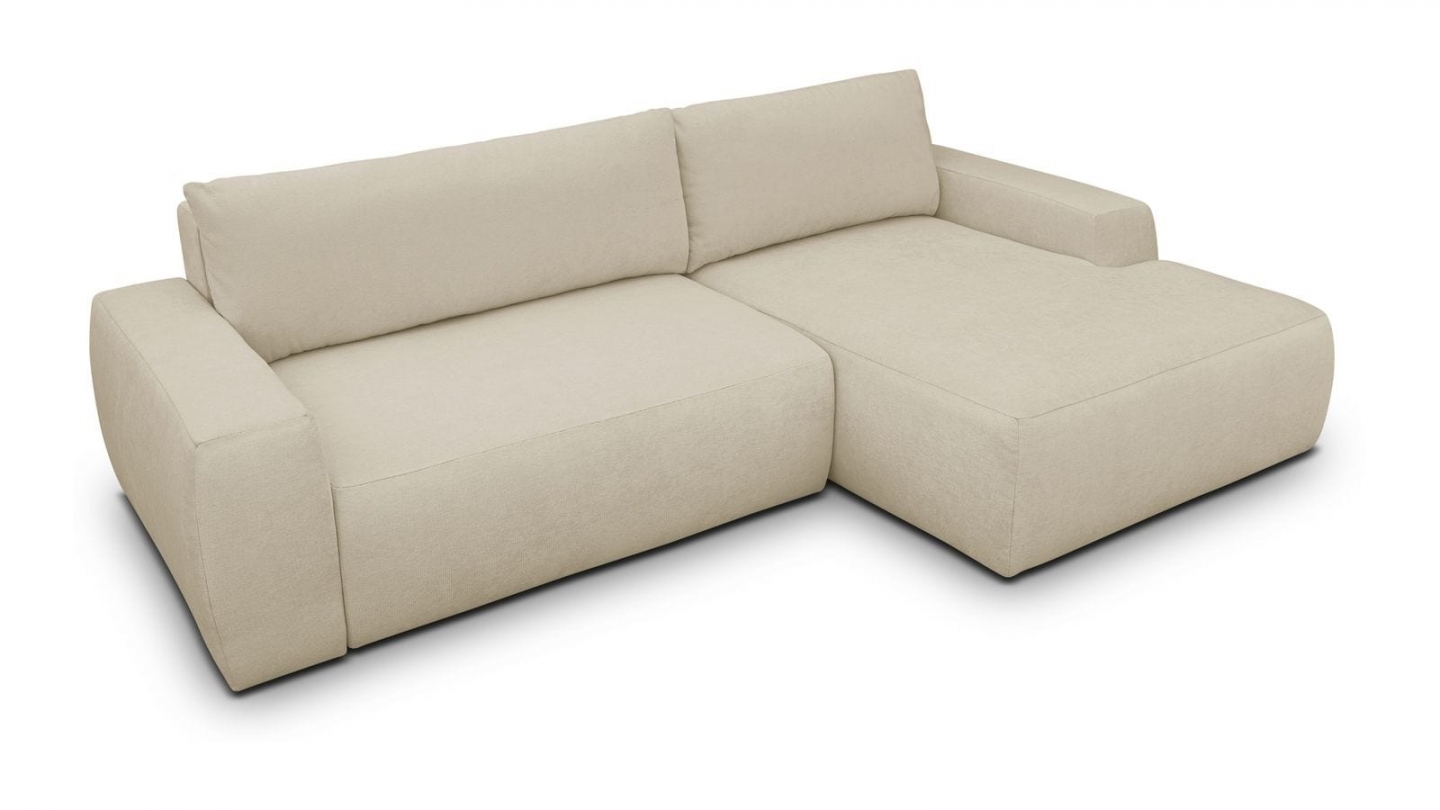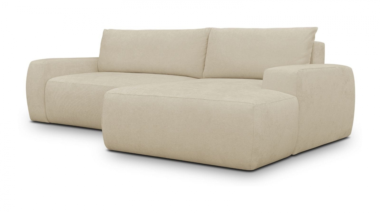 Canapé d'angle convertible 3 places - Sonny• Type d'angle : à gauche (lorsqu'on se tient face au canapé)• Couleur : Beige• Revêtement : Velours côtelé certifié Oekotex• Structure : Pin massif certifié• Garnissage : Mousse de polyuréthane 30k g/m3• Confort : équilibré (accueil moelleux, soutien ferme)• Coussins de dossier déhoussables• 1 coffre de...