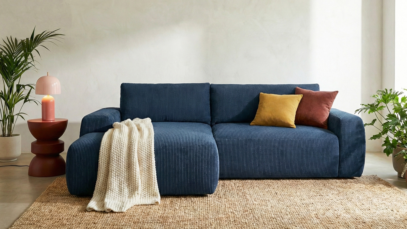Canapé d'angle convertible 3 places - Sonny• Type d'angle : à droite (lorsqu'on se tient face au canapé)• Couleur : Beige• Revêtement : Velours côtelé certifié Oekotex• Structure : Pin massif certifié• Garnissage : Mousse de polyuréthane 30k g/m3• Confort : équilibré (accueil moelleux, soutien ferme)• Coussins de dossier déhoussables• 1 coffre de...