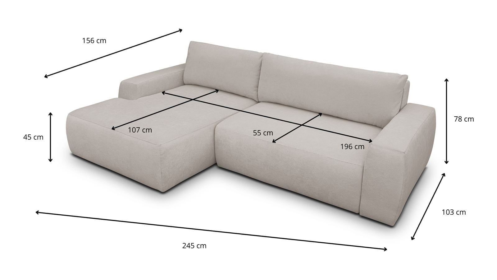 • Type d'angle : à gauche (lorsqu'on se tient face au canapé)