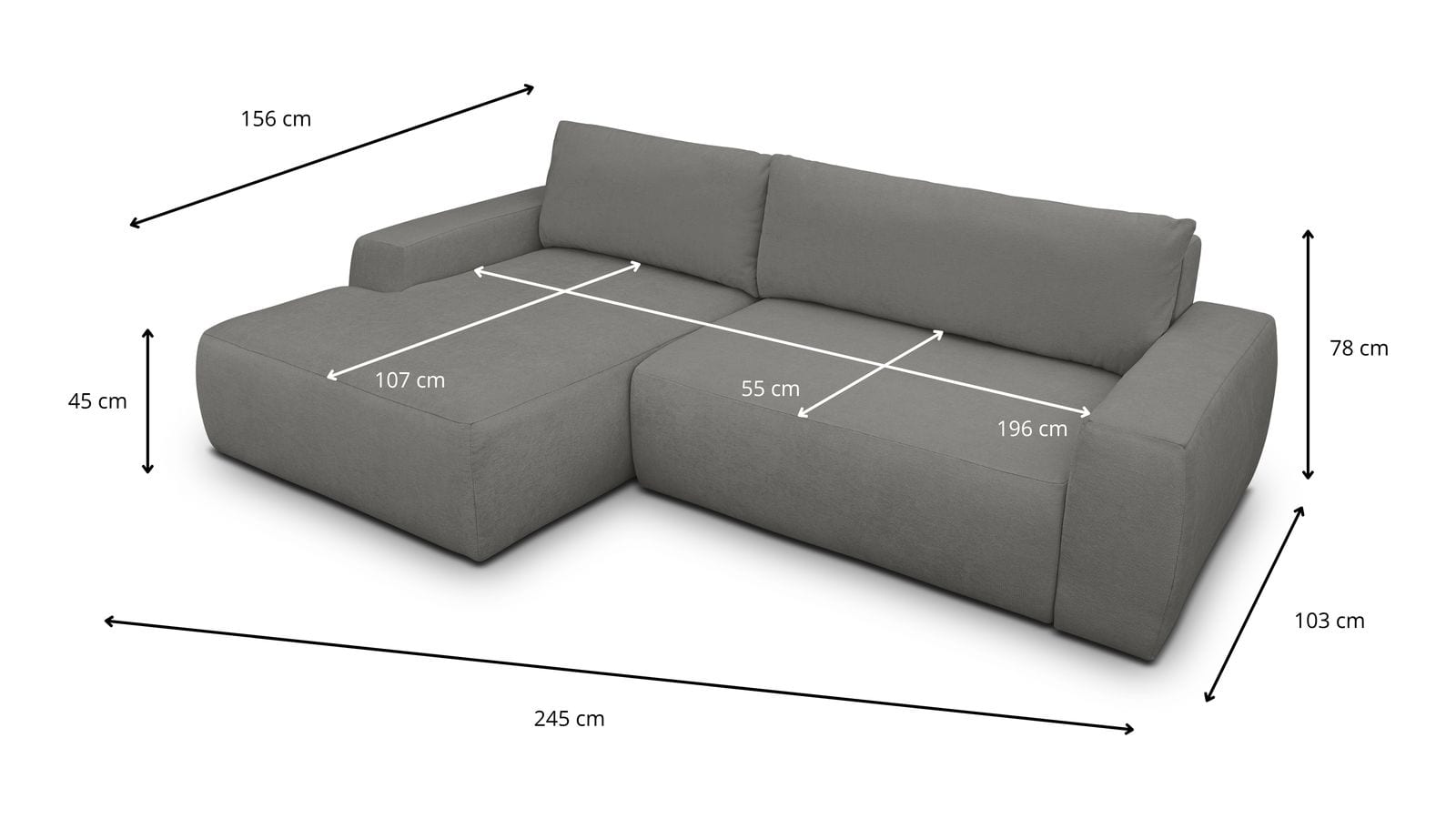 • Type d'angle : à gauche (lorsqu'on se tient face au canapé)