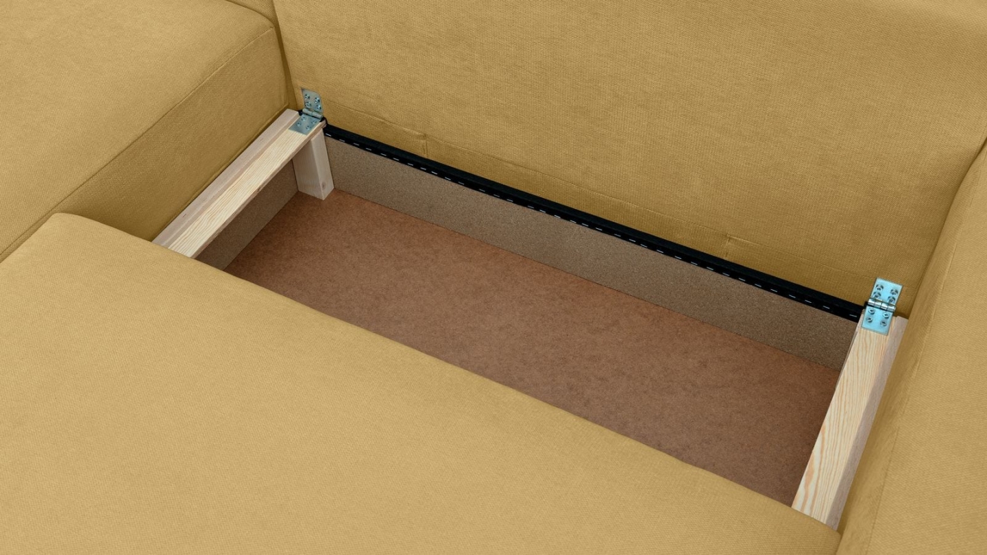 Canapé d'angle convertible 3 places - Sonny• Type d'angle : à gauche (lorsqu'on se tient face au canapé)• Couleur : Beige• Revêtement : Velours côtelé certifié Oekotex• Structure : Pin massif certifié• Garnissage : Mousse de polyuréthane 30k g/m3• Confort : équilibré (accueil moelleux, soutien ferme)• Coussins de dossier déhoussables• 1 coffre de...
