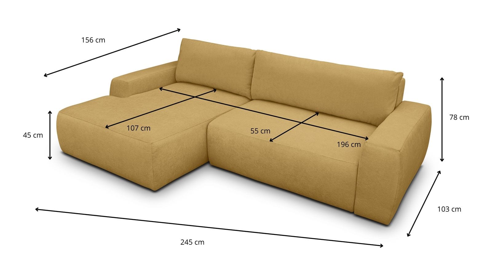 • Type d'angle : à gauche (lorsqu'on se tient face au canapé)