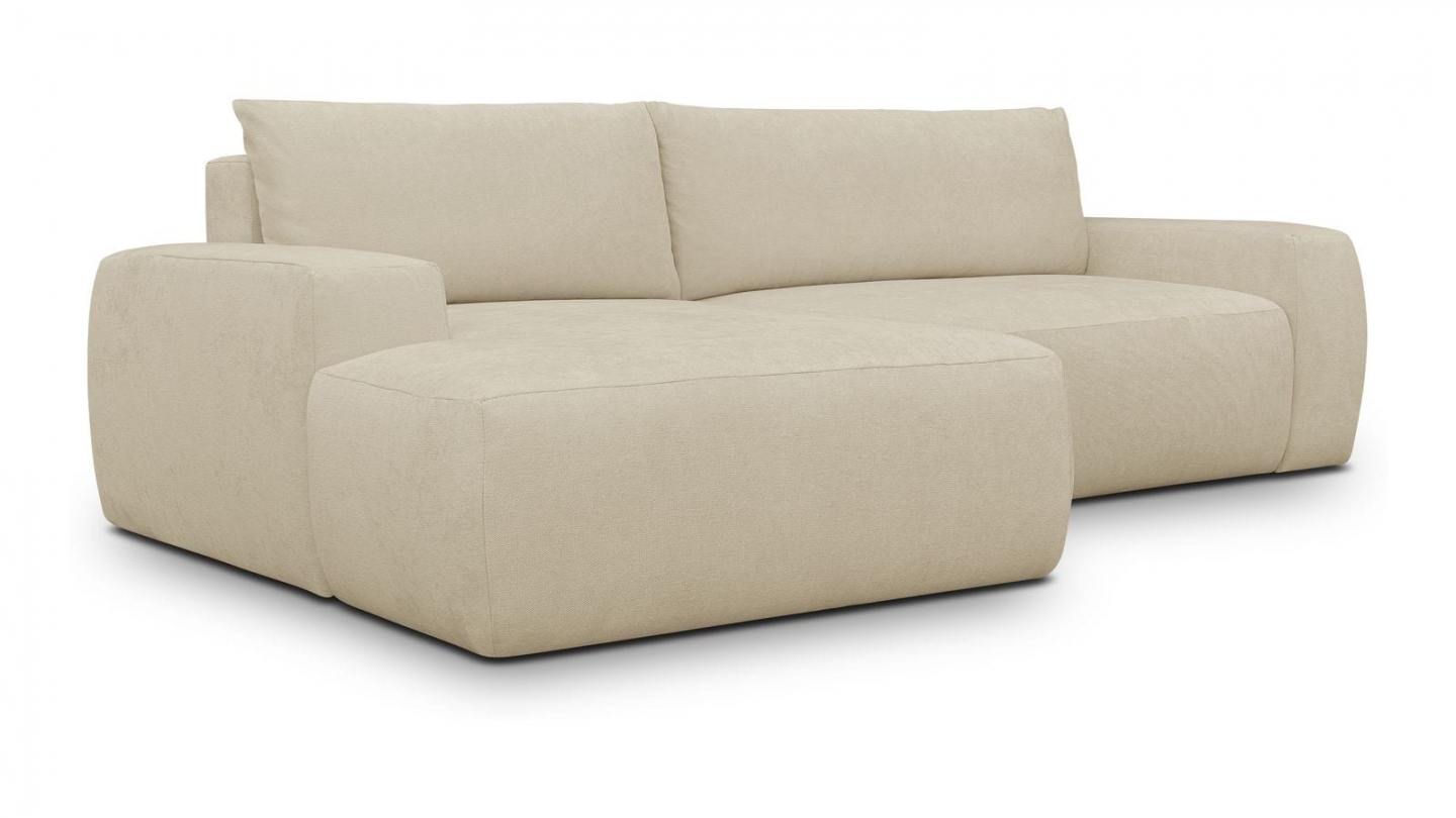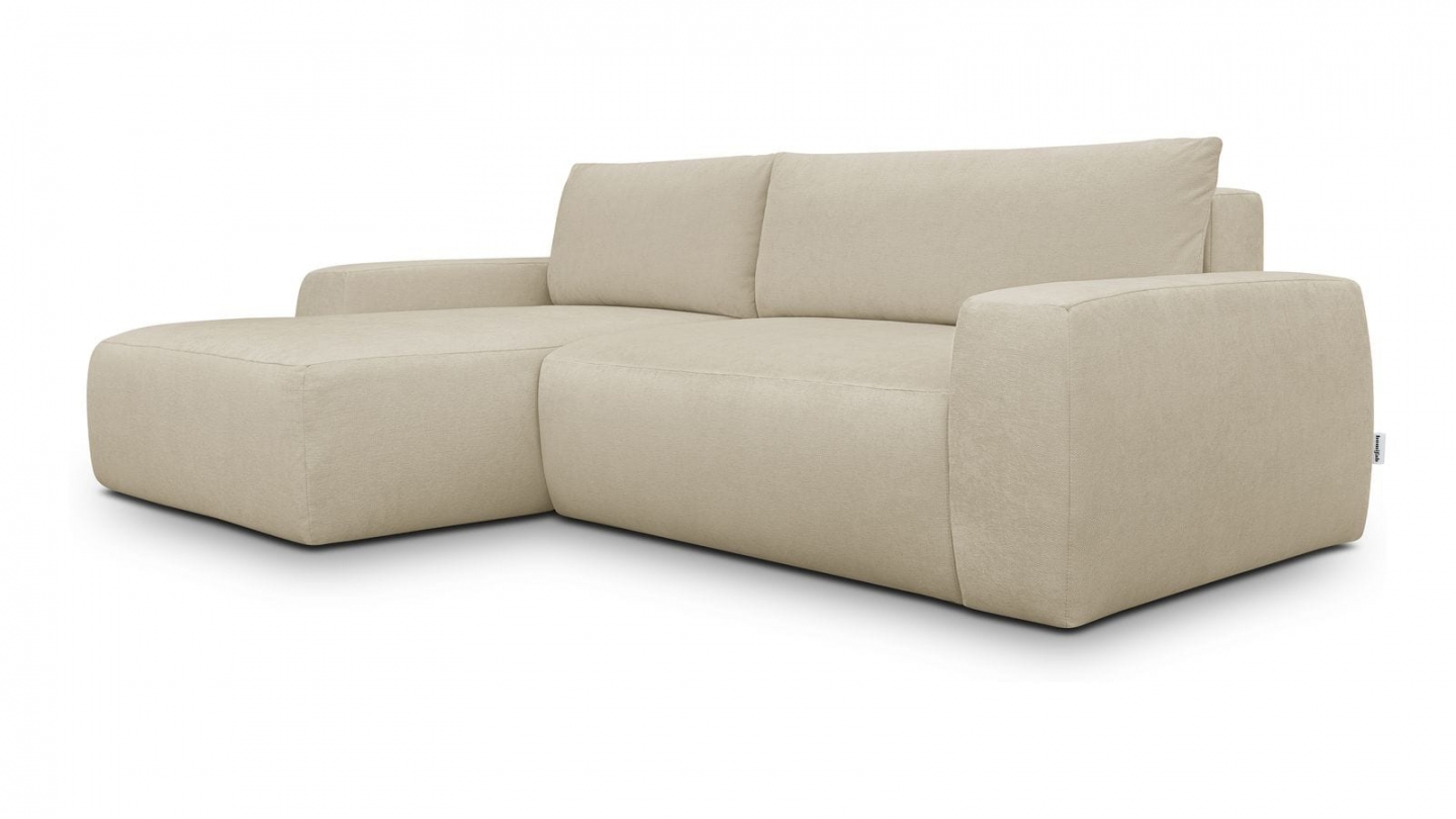 Canapé d'angle convertible 3 places - Sonny• Type d'angle : à gauche (lorsqu'on se tient face au canapé)• Couleur : Beige• Revêtement : Velours côtelé certifié Oekotex• Structure : Pin massif certifié• Garnissage : Mousse de polyuréthane 30k g/m3• Confort : équilibré (accueil moelleux, soutien ferme)• Coussins de dossier déhoussables• 1 coffre de...