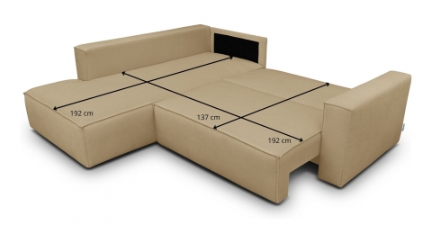 Canapé d'angle ouvert à gauche convertible 3 places en tissu chenille miel est un canapé pensé pour le confort quotidien et l'élégance du salon. Son revêtement en tissu chenille offre une texture agréable au toucher et une résistance appréciable dans le temps. La teinte jaune miel s'intègre avec naturel dans de nombreuses ambiances déco, du style scandinave au décor contemporain. Une fois déplié, il offre un couchage de 137, parfait pour accueillir vos invités dans le confort. Son coffre de rangement intégré permet de ranger plaids et linge de lit discrètement sous l'assise. L'angle structure naturellement l'espace et délimite une zone salon confortable et conviviale. Avec des dimensions totales de 231, il s'intègre aussi bien dans les grands espaces que dans les pièces à vivre de taille intermédiaire. Fabriqué en Europe, il répond aux exigences de qualité les plus strictes.