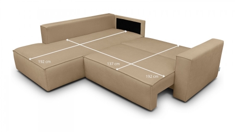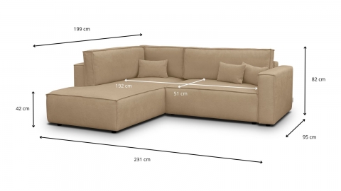 Canapé d'angle ouvert à gauche convertible 3 places en tissu chenille moka est un canapé pensé pour le confort quotidien et l'élégance du salon. Son revêtement en tissu chenille offre une texture agréable au toucher et une résistance appréciable dans le temps. La teinte moka s'intègre avec naturel dans de nombreuses ambiances déco, du style scandinave au décor contemporain. Une fois déplié, il offre un couchage de 137, parfait pour accueillir vos invités dans le confort. Son coffre de rangement intégré permet de ranger plaids et linge de lit discrètement sous l'assise. L'angle structure naturellement l'espace et délimite une zone salon confortable et conviviale. Avec des dimensions totales de 231, il s'intègre aussi bien dans les grands espaces que dans les pièces à vivre de taille intermédiaire. Fabriqué en Europe, il répond aux exigences de qualité les plus strictes.