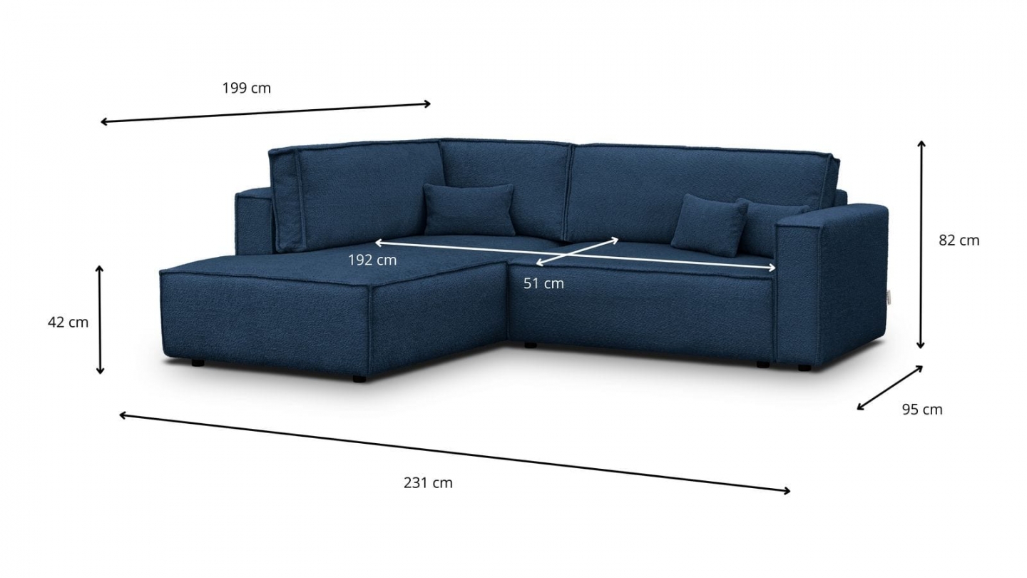 • Type d'angle : à gauche (lorsqu'on se tient face au canapé)