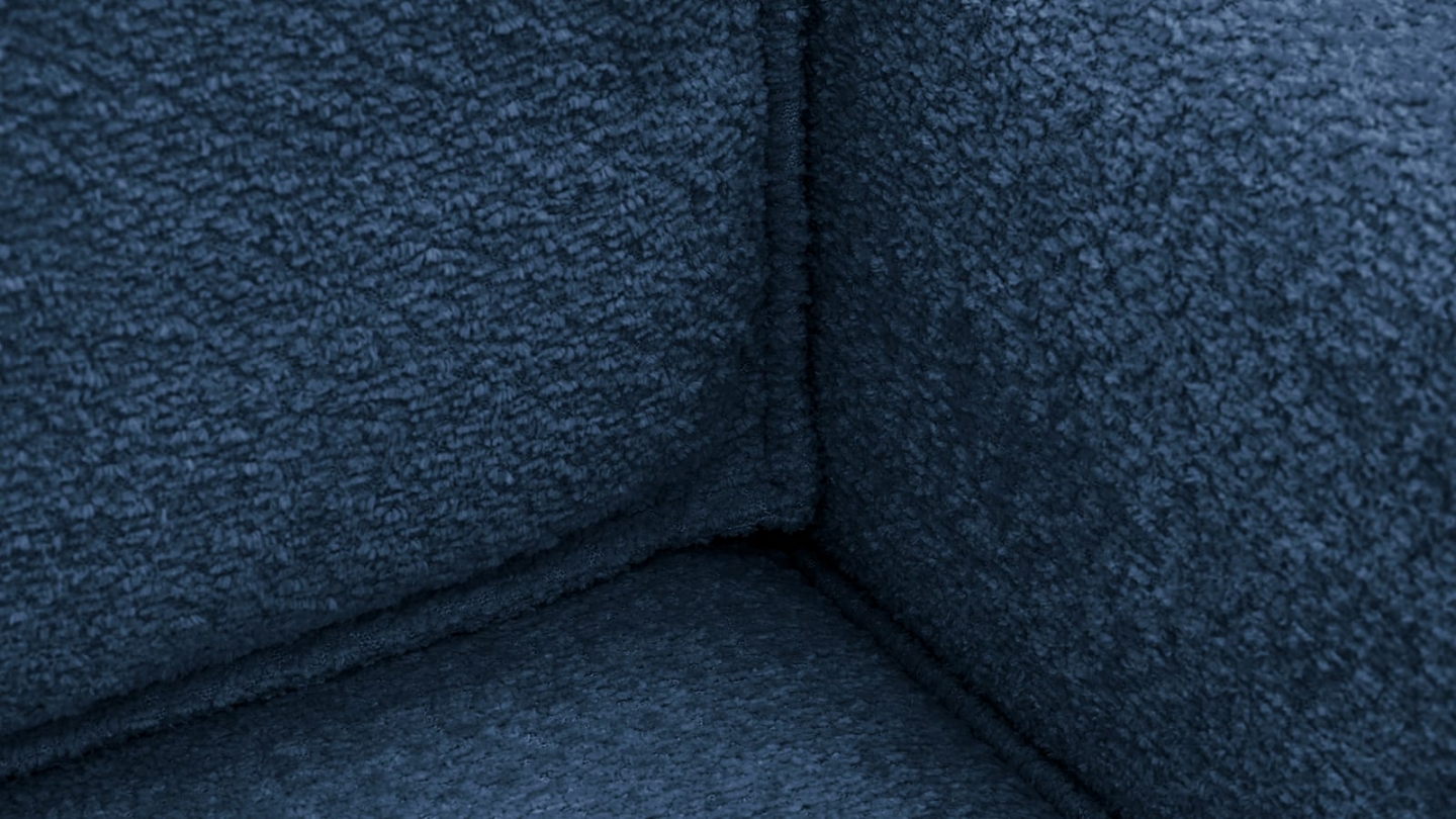 Canapé d'angle convertible 3 places - Emma • Confort : équilibré : accueil moelleux, soutien ferme • Couleur : bleu foncé • Revêtement : tissu chenille • certifié Oekotex - Petfriendly • Angle à gauche (lorsque• on est face au canapé) • Coffre de rangement sous l• assise, pratique pour ranger plaids, couettes etc. • Structure en bois massif certifié •...