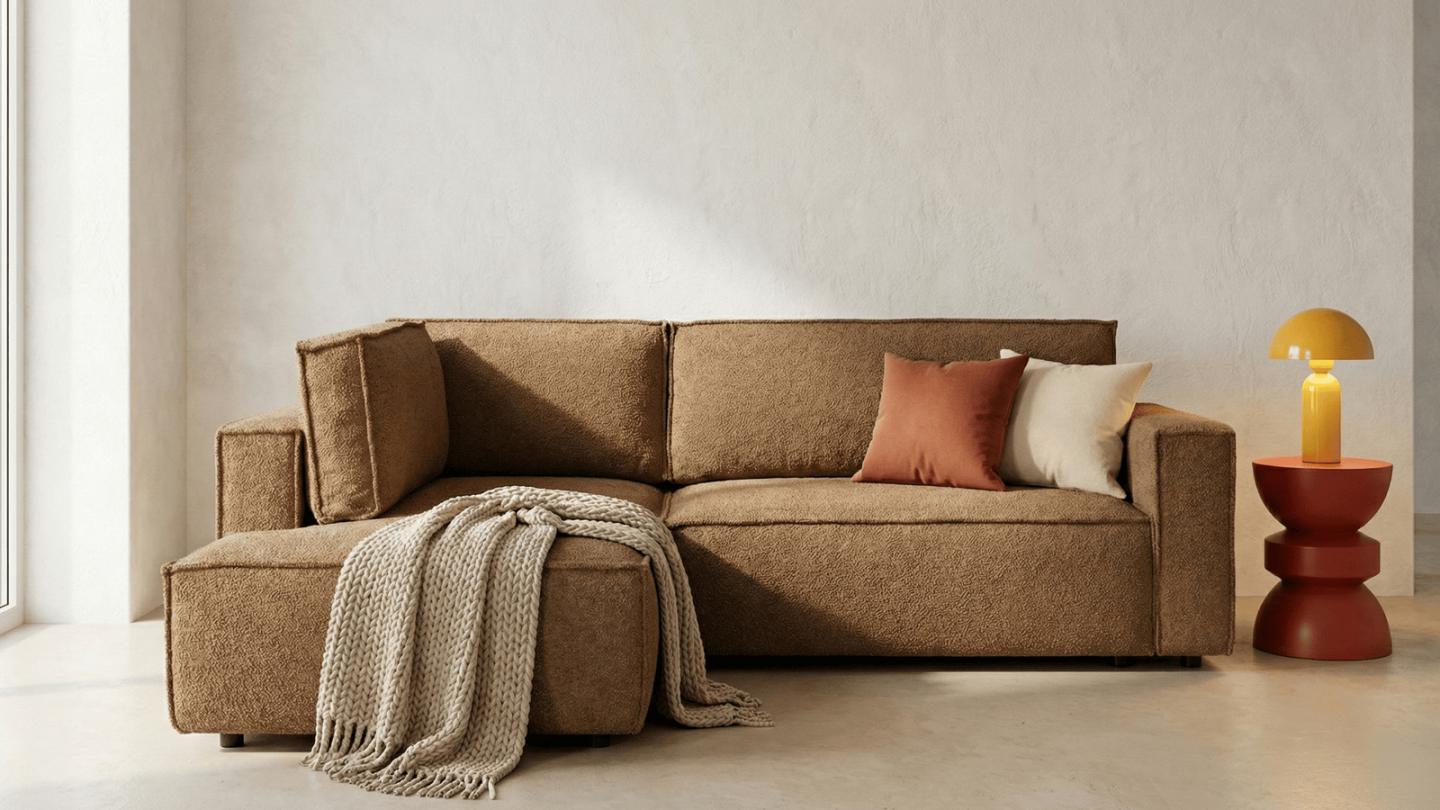 La collection Emma se distingue par son revêtement en tissu bouclé 440 g/m² certifié Oeko-Tex, une matière tendance qui associe douceur au toucher et résistance à l'usage quotidien. Ses lignes généreuses et contemporaines s'intègrent aussi bien dans un intérieur scandinave que dans un décor bohème ou naturel. Proposée par Homifab, la collection Emma transforme le salon en un espace accueillant et stylé, idéal pour les moments en famille ou entre amis.