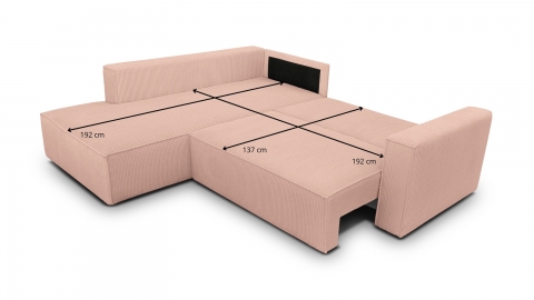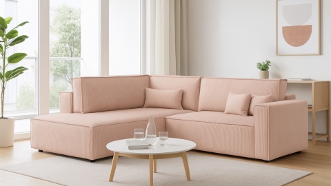 Le canapé d’angle convertible Emma combine confort, praticité et design moderne pour s’adapter à toutes les envies. Conçu en Europe, il séduit par ses lignes sobres et sa conception soignée. Son revêtement en velours côtelé rose pâle certifié Oeko-Tex et Petfriendly apporte une touche douce et lumineuse à votre intérieur, créant une atmosphère chaleureuse et élégante.