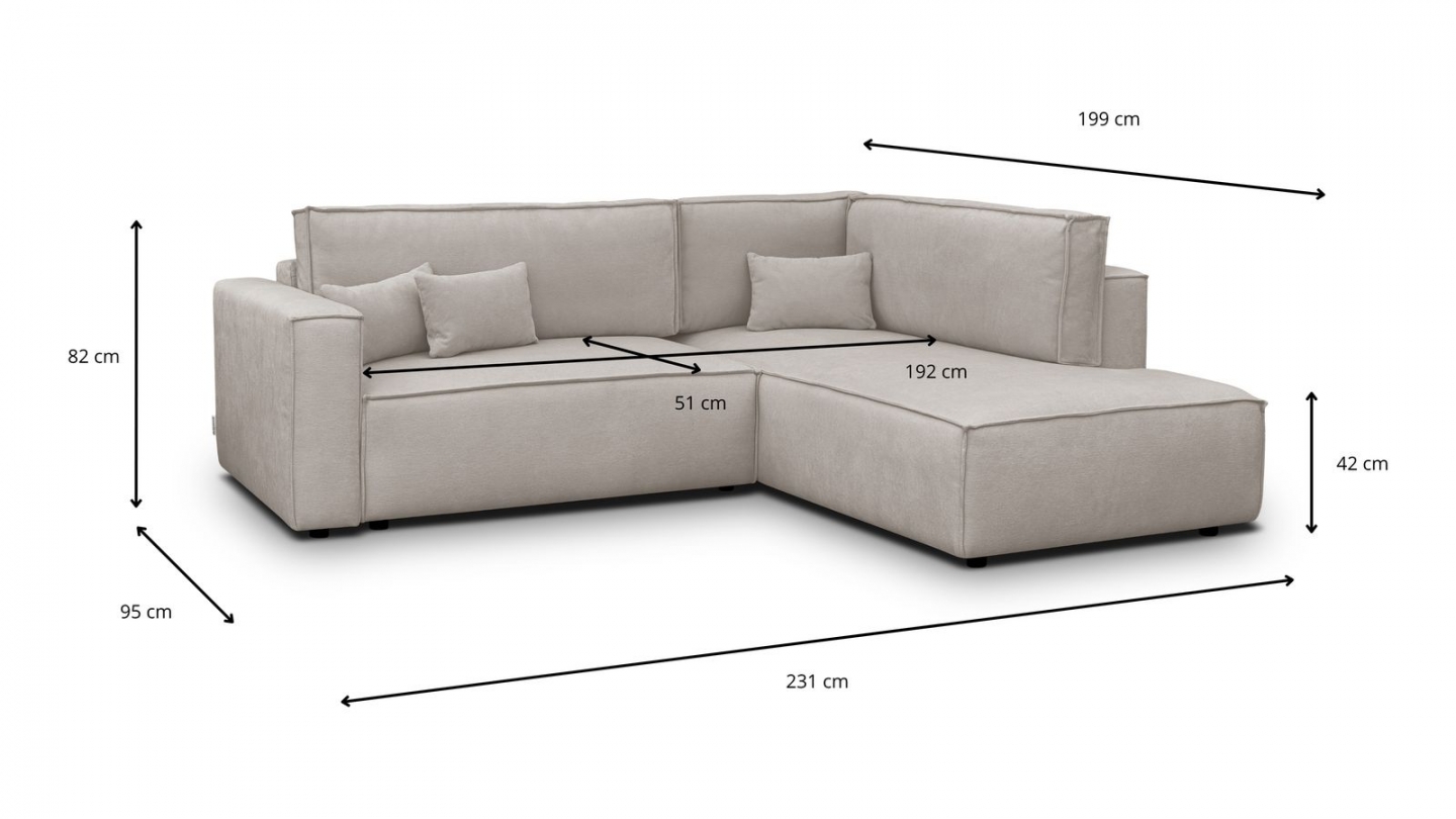 • Hauteur de l• assise : 42• cm • Profondeur de l• assise : 51• cm • Largeur de l• assise : 192• cm