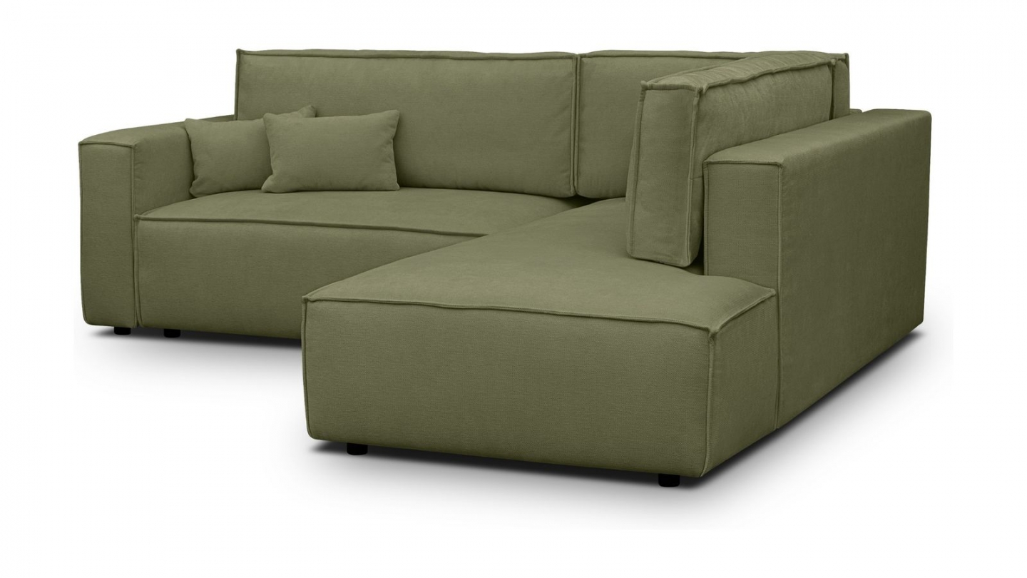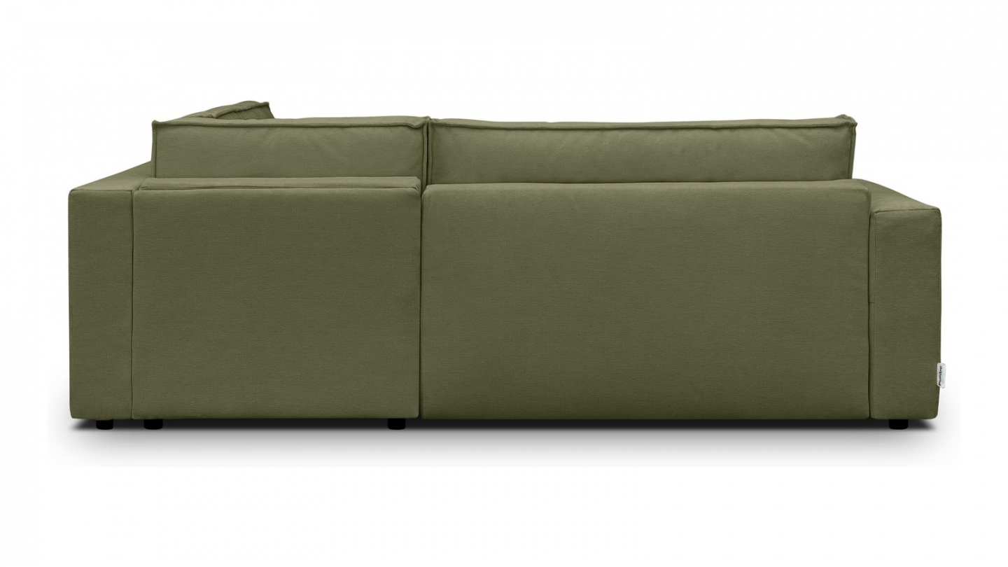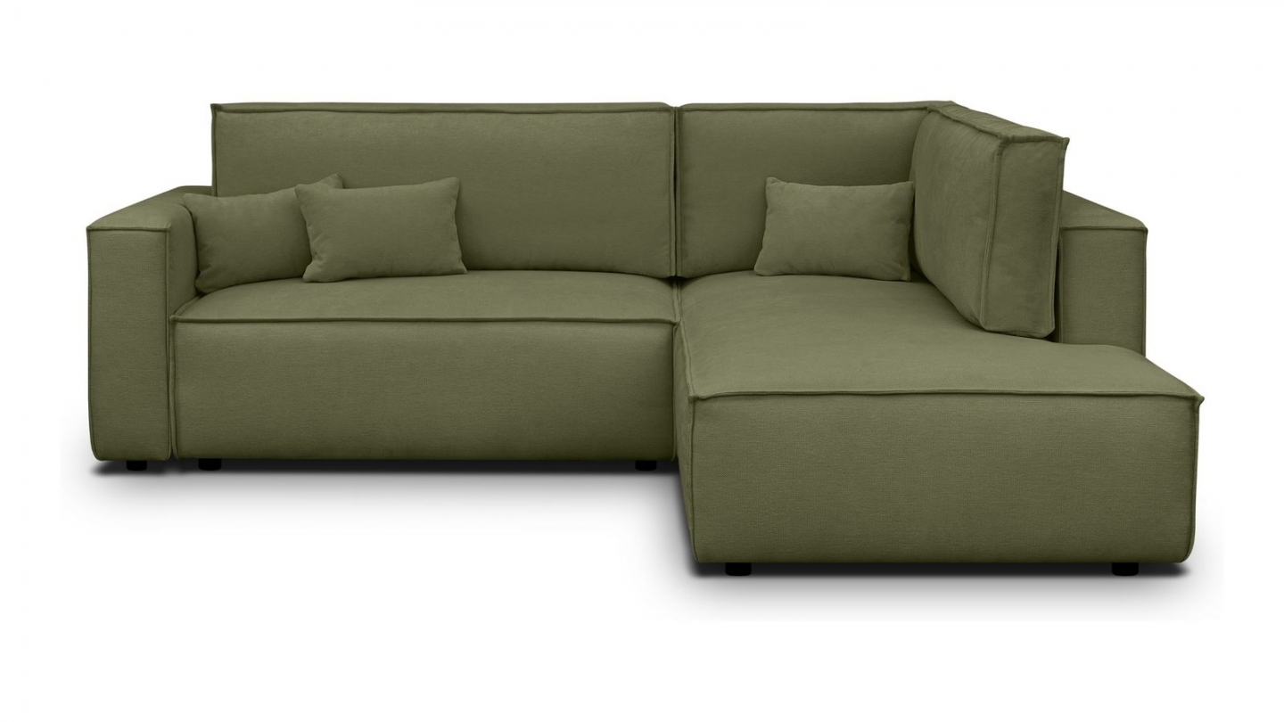 Canapé d'angle convertible 3 places - Emma • Confort : équilibré : accueil moelleux, soutien ferme • Couleur : vert olive • Revêtement : tissu chenille • certifié Oekotex - Petfriendly • Angle à gauche (lorsque• on est face au canapé) • Coffre de rangement sous l• assise, pratique pour ranger plaids, couettes etc. • Structure en bois massif certifié •...
