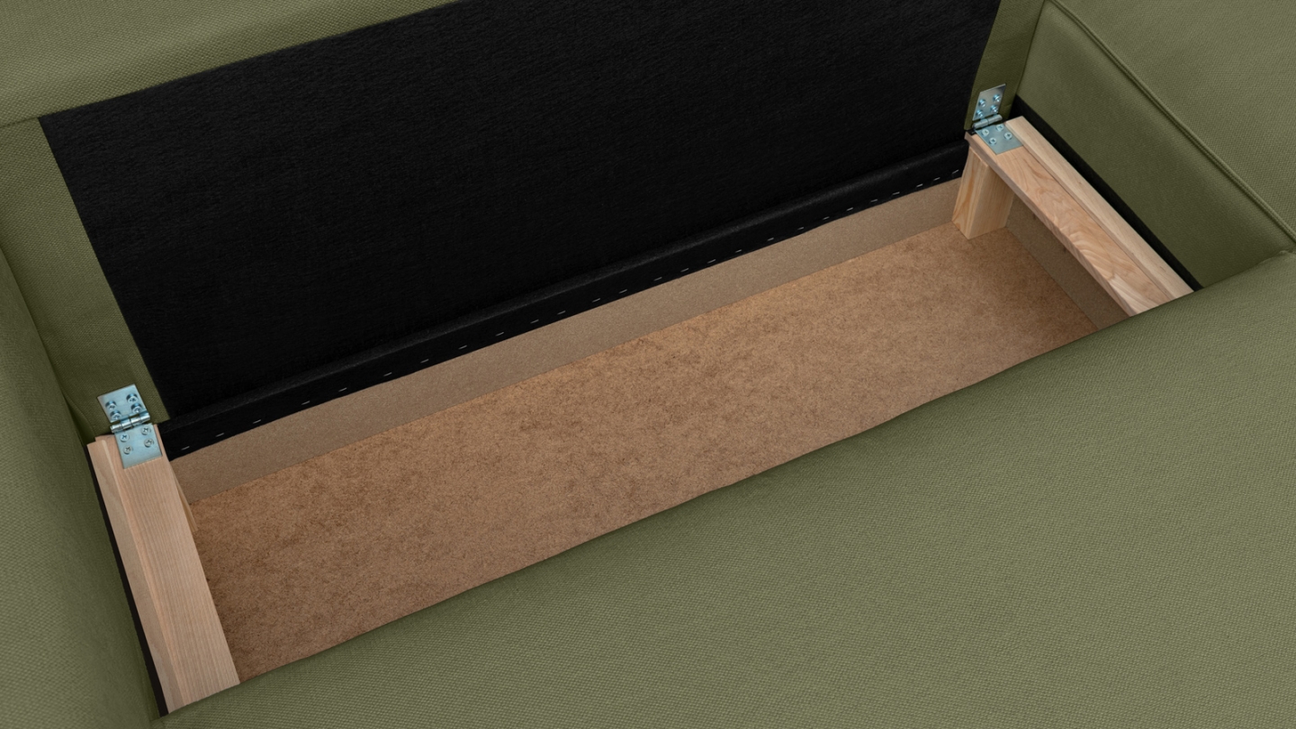 • Coffre de rangement sous l• assise, pratique pour ranger plaids, couettes etc.