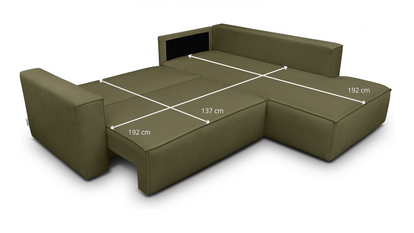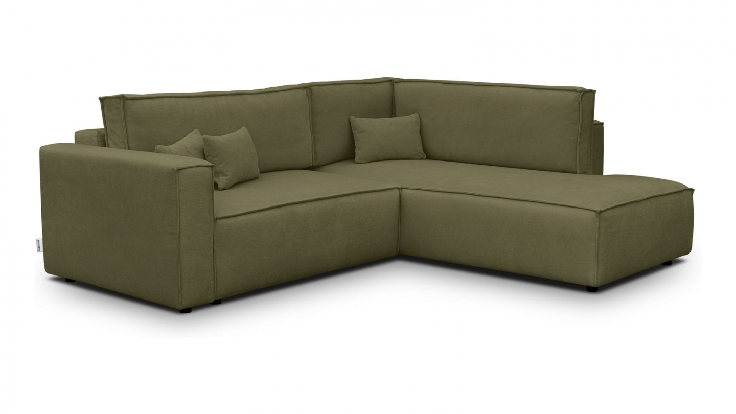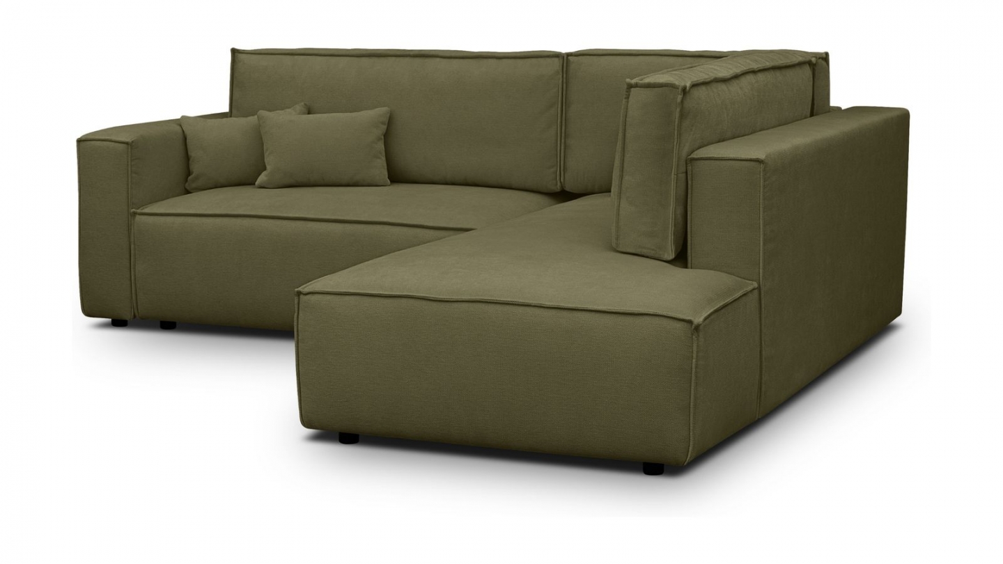 Canapé d'angle convertible 3 places - Emma • Confort : équilibré : accueil moelleux, soutien ferme • Couleur : vert olive • Revêtement : tissu chenille • certifié Oekotex - Petfriendly • Angle à gauche (lorsque• on est face au canapé) • Coffre de rangement sous l• assise, pratique pour ranger plaids, couettes etc. • Structure en bois massif certifié •...