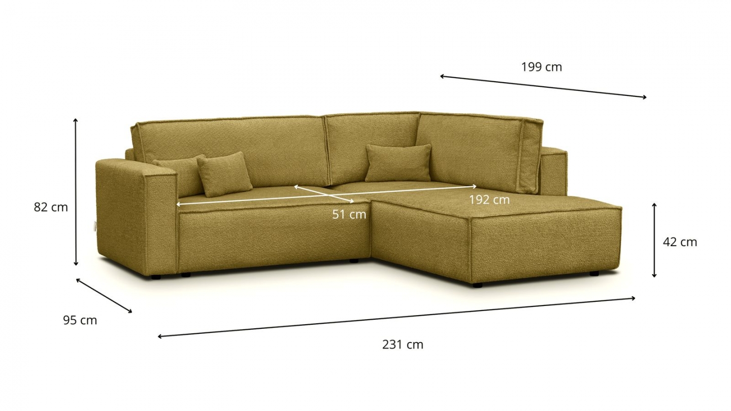 • Type d'angle : à droite (lorsqu'on se tient face au canapé)