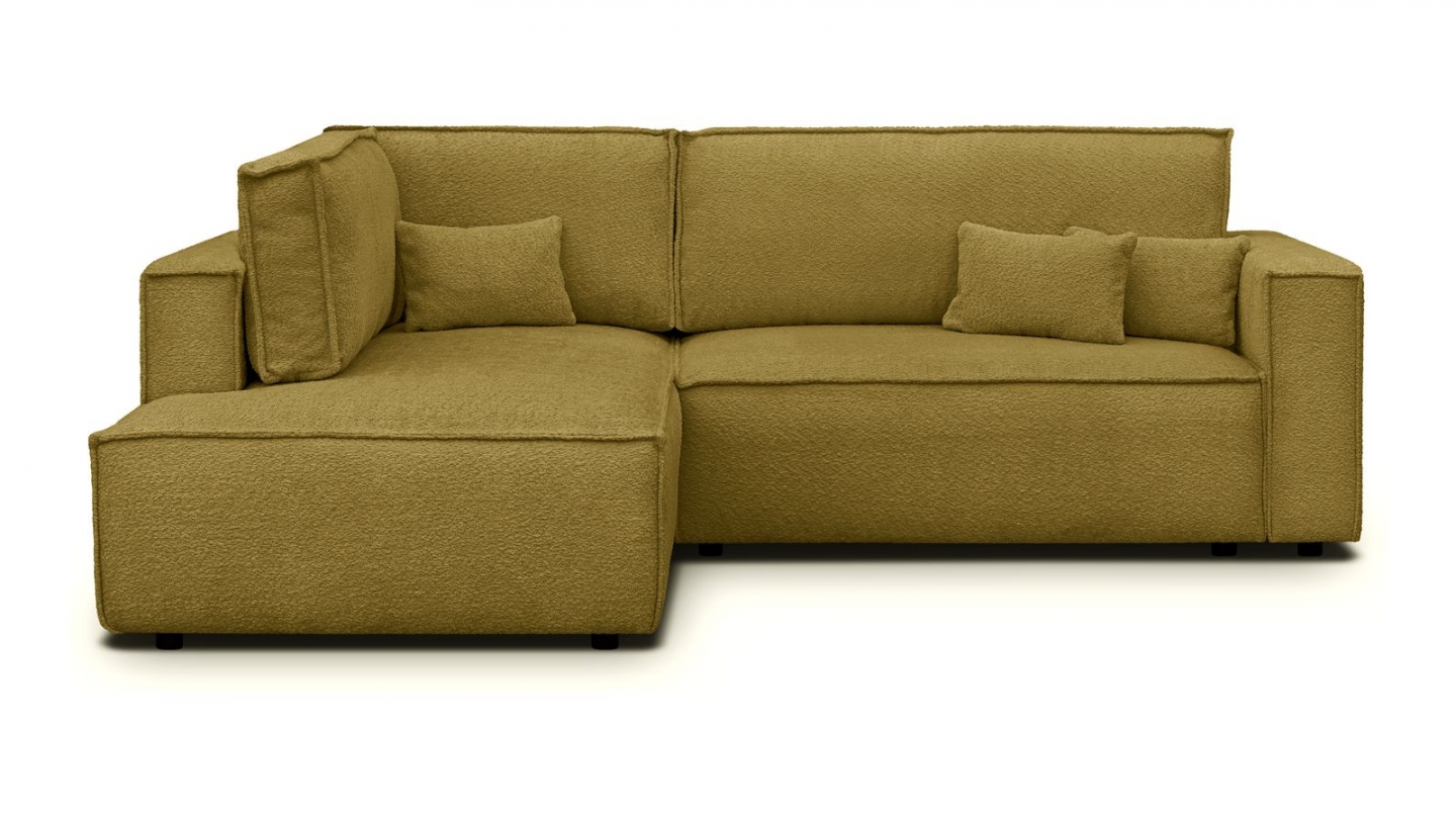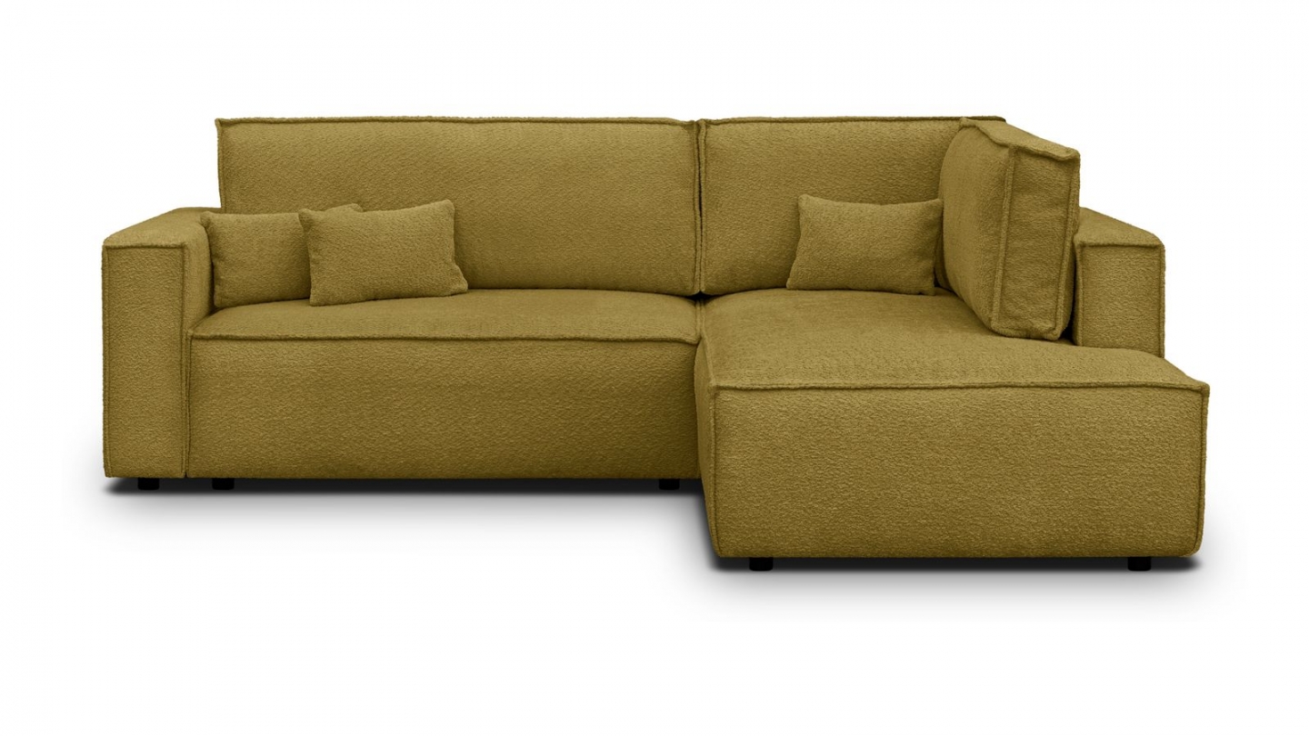 Canapé d'angle convertible 3 places - Emma • Confort : équilibré : accueil moelleux, soutien ferme • Couleur : jaune moutarde • Revêtement : tissu chenille • certifié Oekotex - Petfriendly • Angle à gauche (lorsque• on est face au canapé) • Coffre de rangement sous l• assise, pratique pour ranger plaids, couettes etc. • Structure en bois massif...