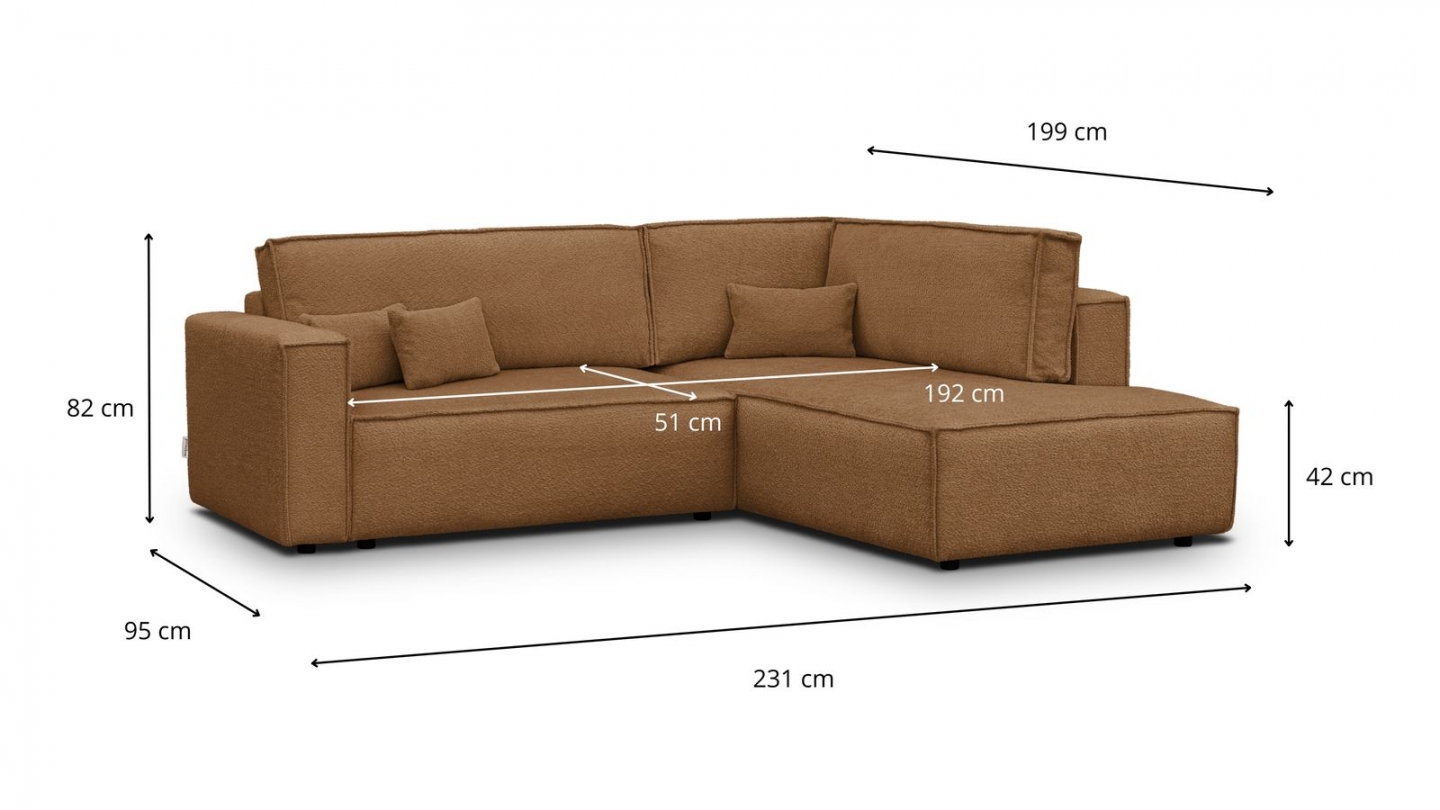 • Type d'angle : à droite (lorsqu'on se tient face au canapé)