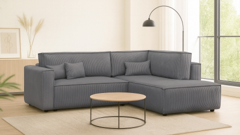 Le canapé d’angle convertible Emma combine confort, praticité et design moderne pour s’adapter à toutes les envies. Conçu en Europe, il séduit par ses lignes sobres et sa conception soignée. Son revêtement en velours côtelé gris anthracite certifié Oeko-Tex et Petfriendly apporte une touche élégante et intemporelle à votre intérieur, s’harmonisant facilement avec tous les styles de décoration.