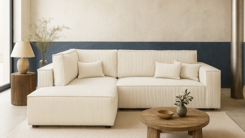 Le canapé d’angle convertible Emma combine confort, praticité et design moderne pour s’adapter à toutes les envies. Conçu en Europe, il séduit par ses lignes sobres et sa conception soignée. Son revêtement en velours côtelé beige certifié Oeko-Tex et Petfriendly apporte une touche lumineuse à votre intérieur, créant une atmosphère chaleureuse et accueillante.