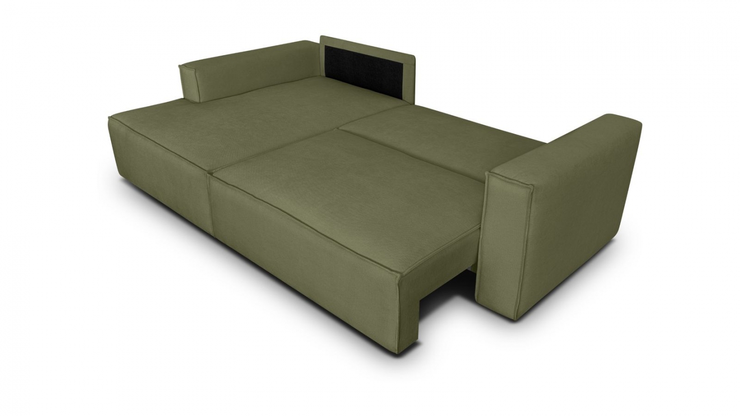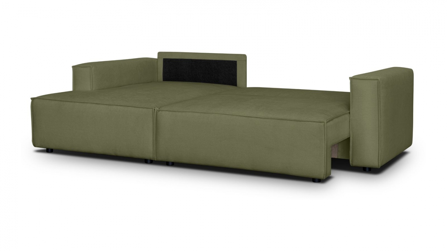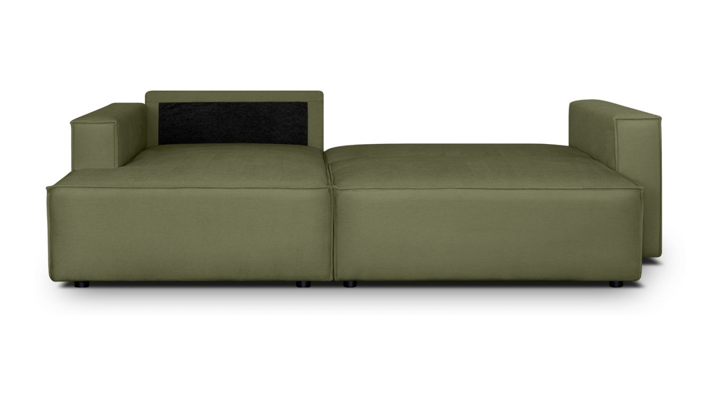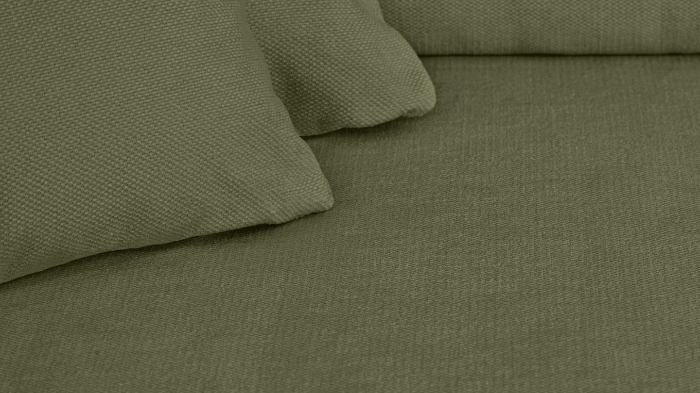 Le canapé d’angle Asti en vert olive incarne un parfait équilibre entre esthétique douce et fonctionnalité discrète.