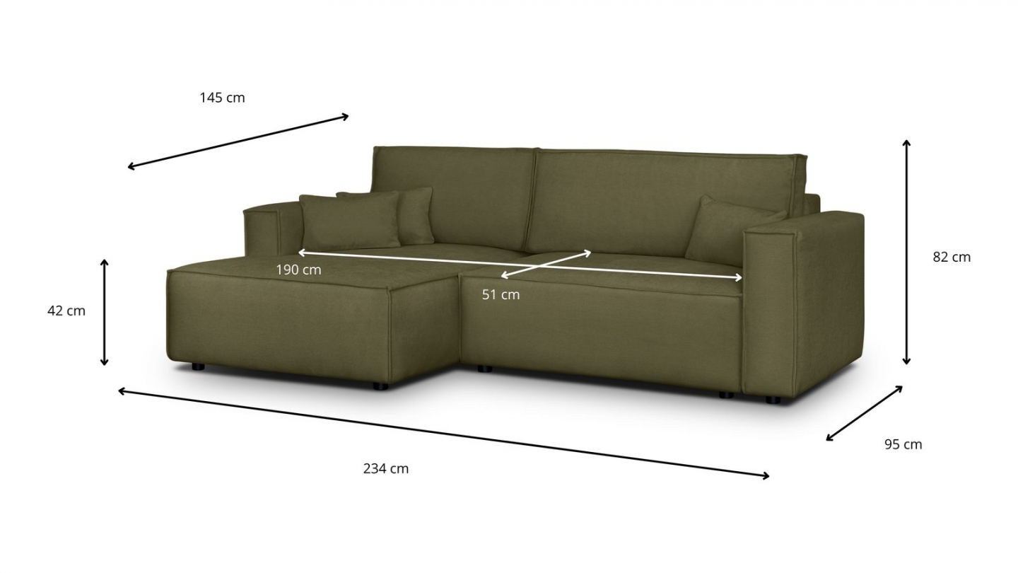• Type d'angle : à gauche (lorsqu'on se tient face au canapé)
