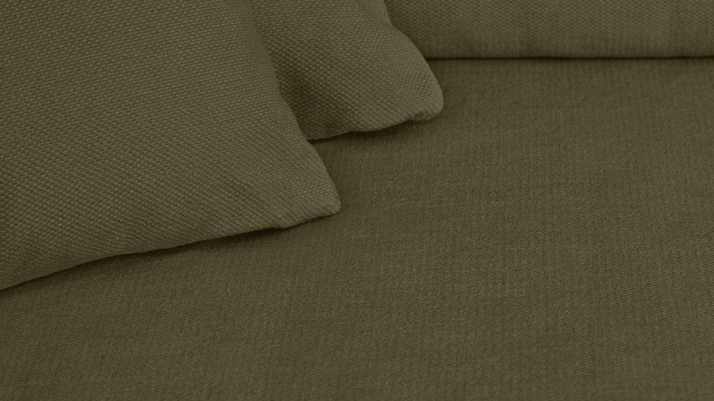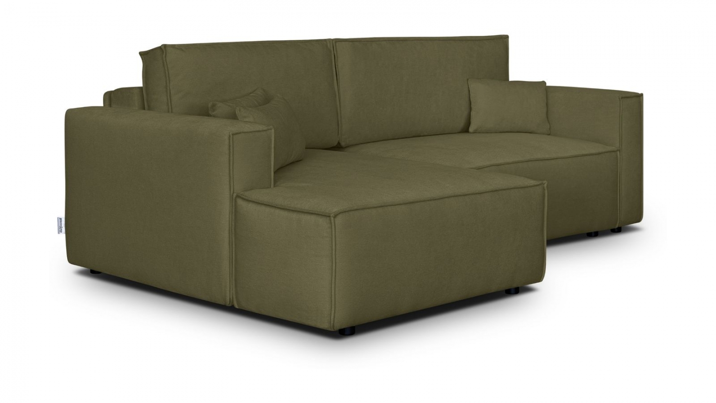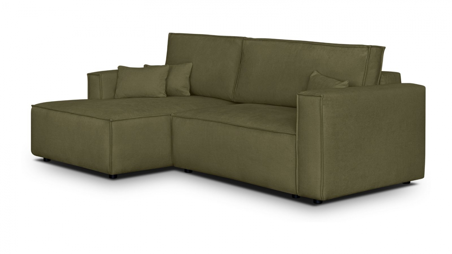 Envie d’un salon apaisant, confortable et stylé ? Le canapé d’angle Asti en vert kaki a tout pour créer un cocon où il fait bon vivre.